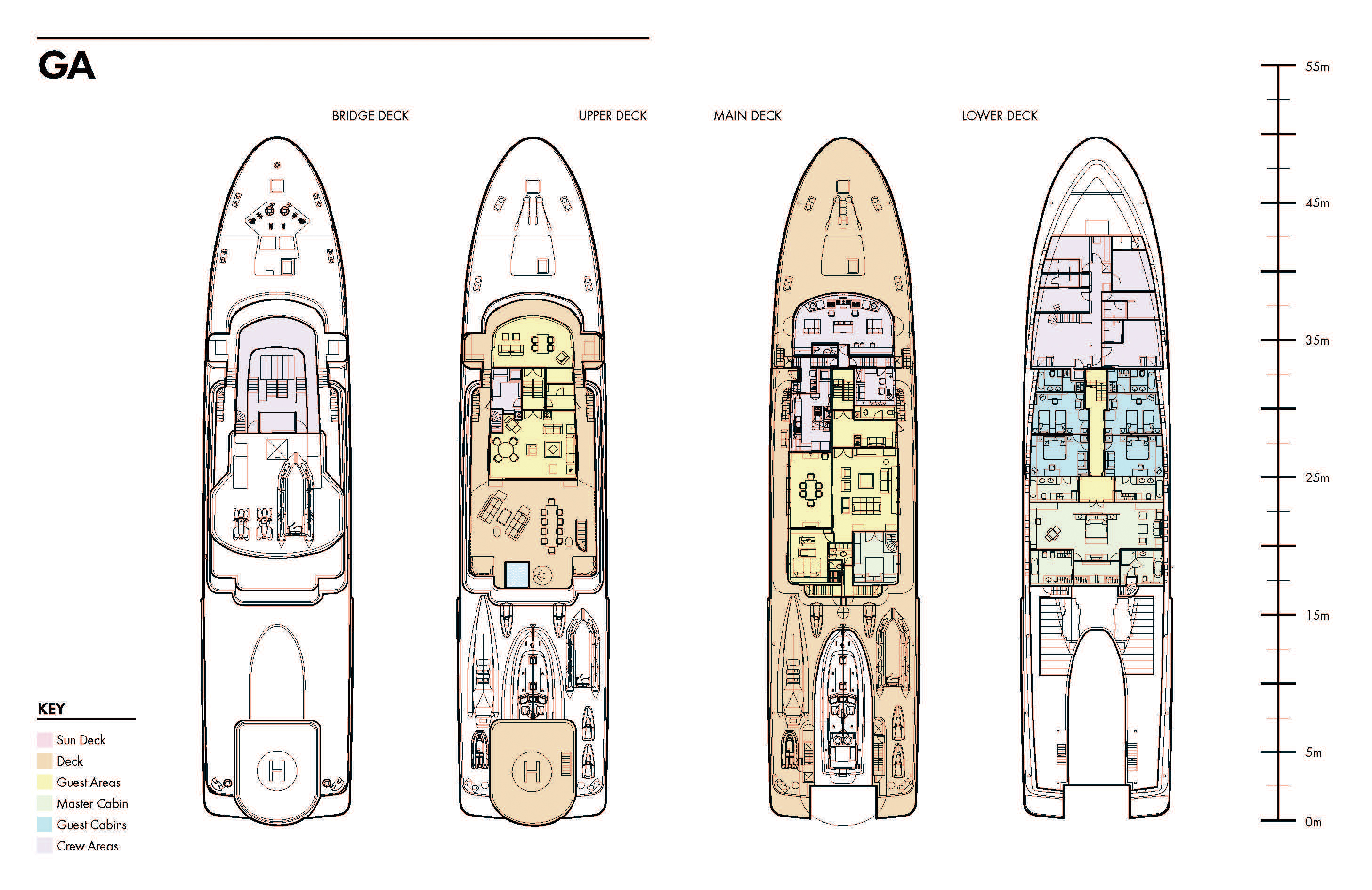 - Six tenders on board, including a 13.8m (45ft) Catalyst motor catamaran