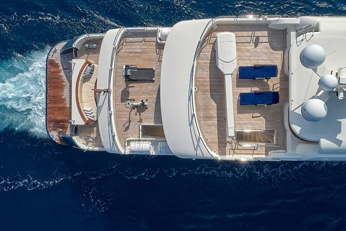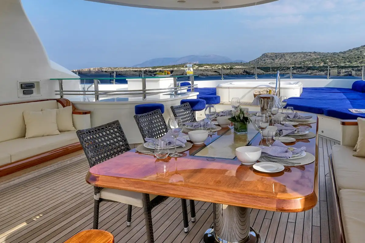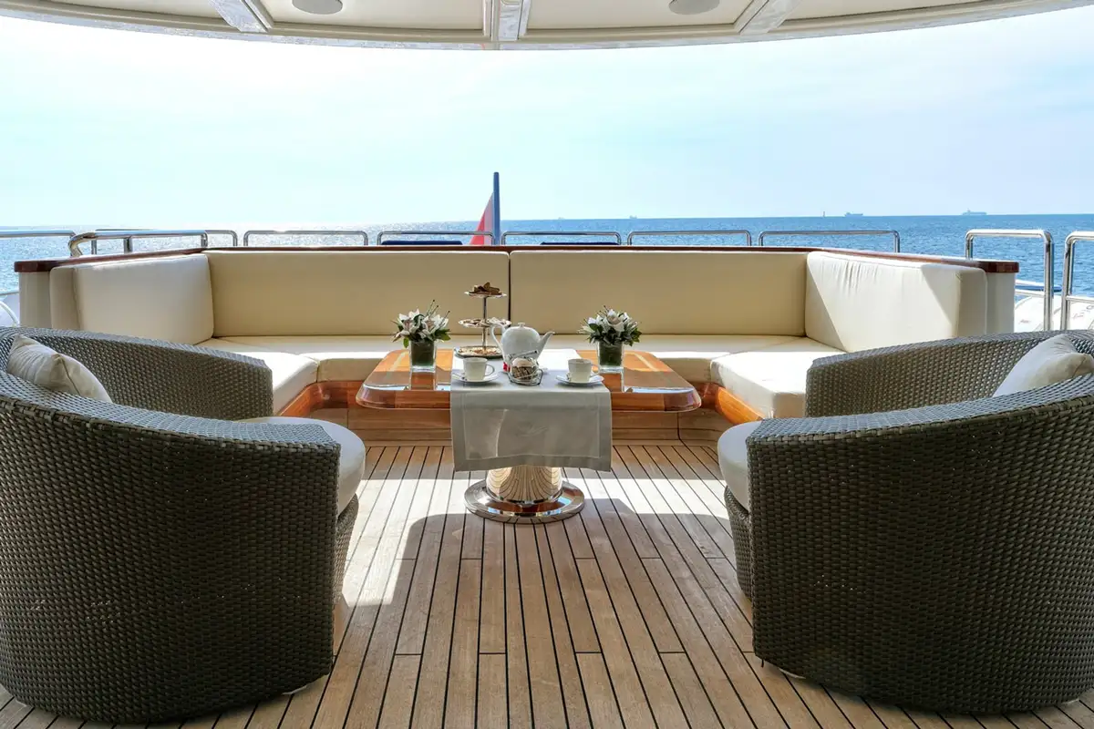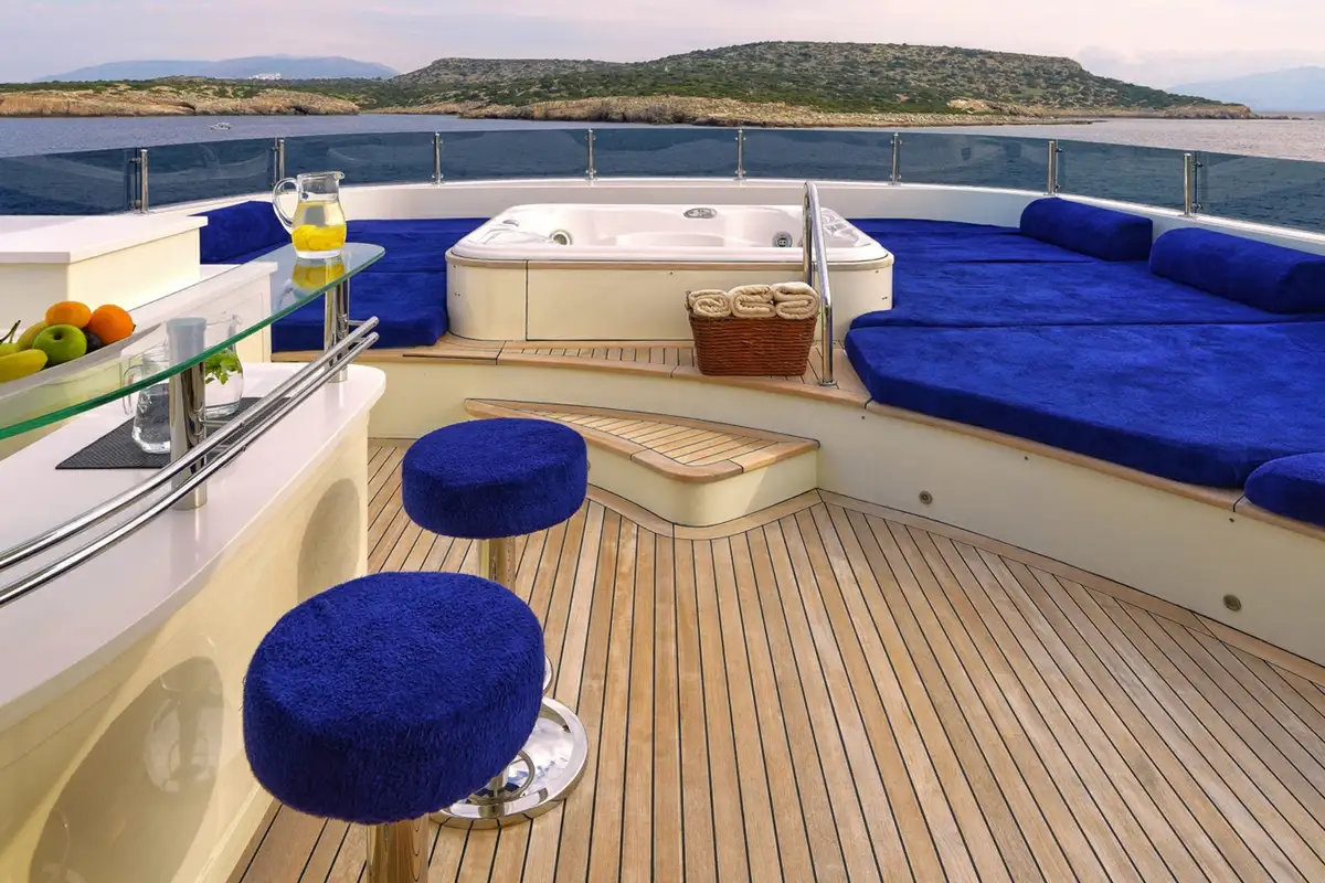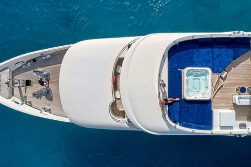 Her sundeck, which includes an outdoor lounge area and a Jacuzzi, is always a favourite spot among guests and offers spectacular views. She also features a large selection of water toys.