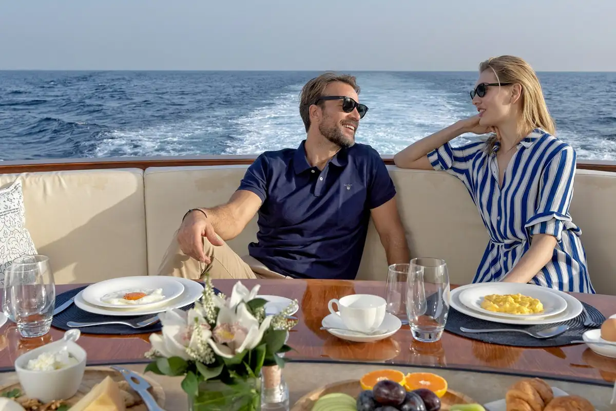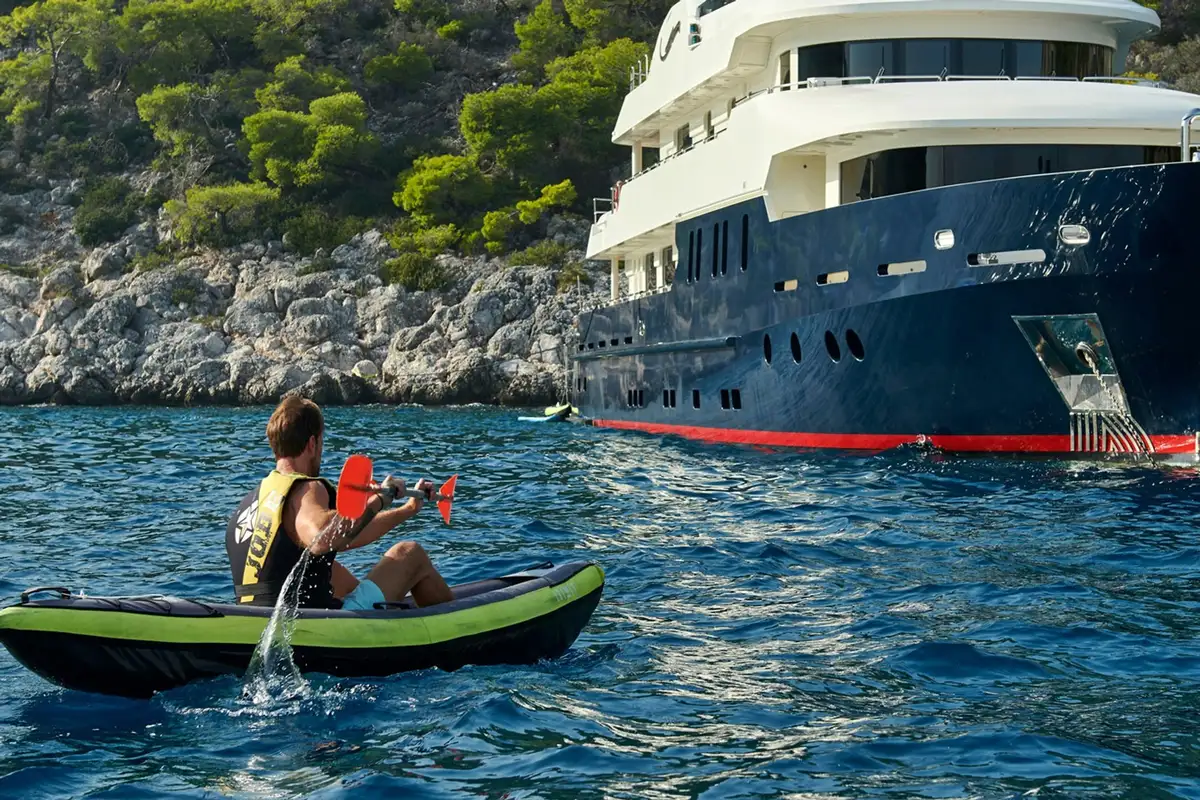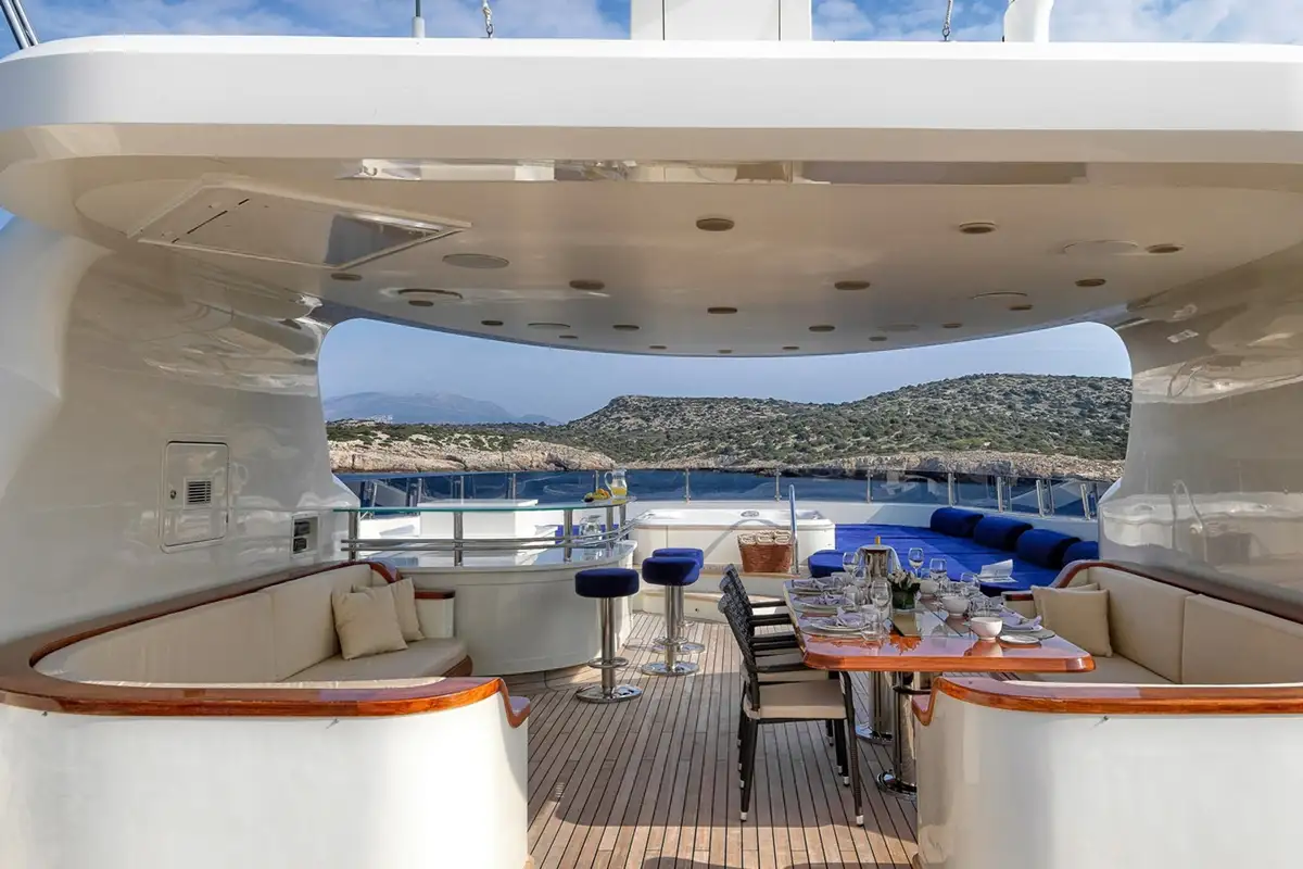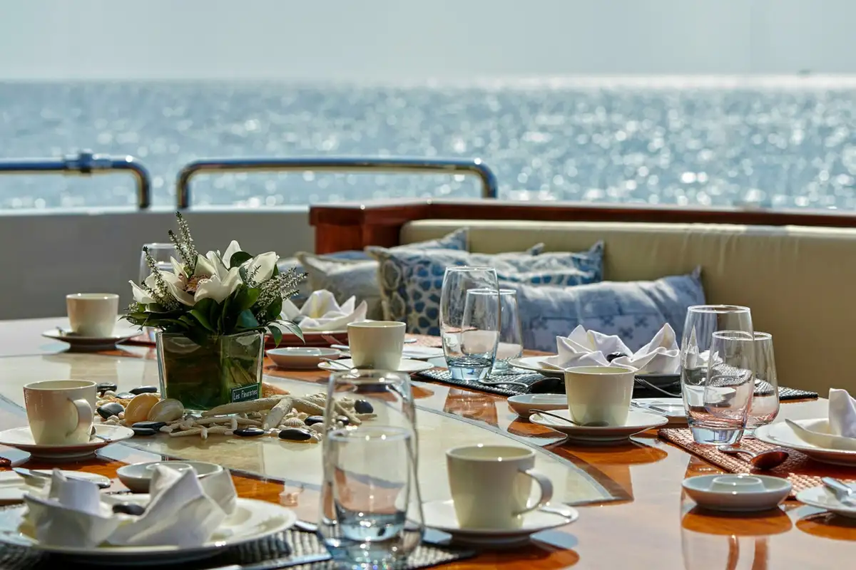 Her sundeck, which includes an outdoor lounge area and a Jacuzzi, is always a favourite spot among guests and offers spectacular views. She also features a large selection of water toys.