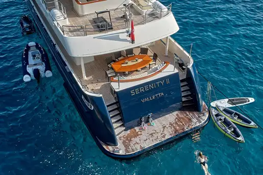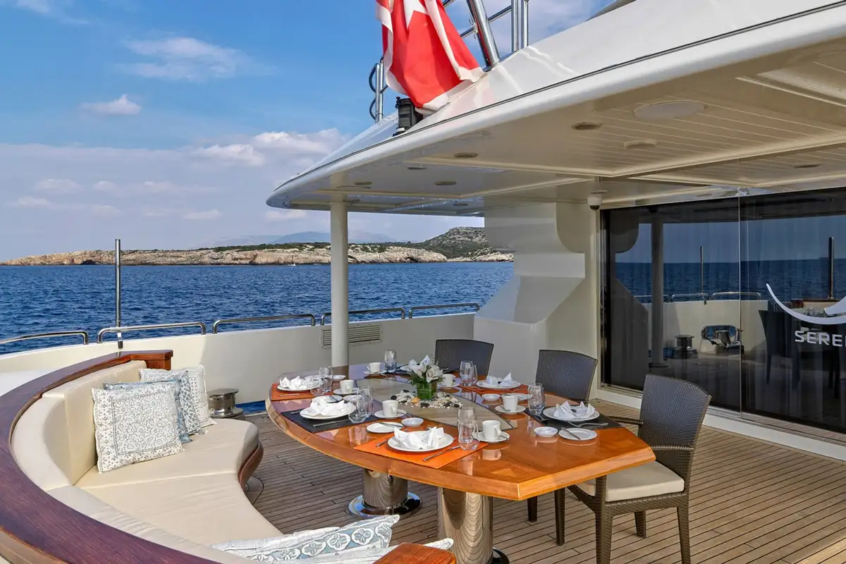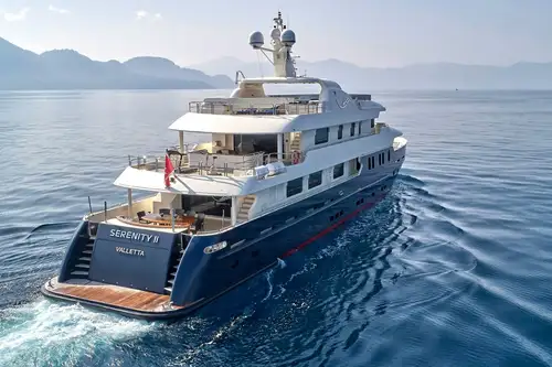 With exterior styling by Endaze Muhendislik and an elegant interior designed by London based H2 Yacht Design, SERENITY II can comfortably accommodate twelve guests in six luxurious cabins including a master suite, 2 VIP staterooms, 2 double cabins with pullman bed.