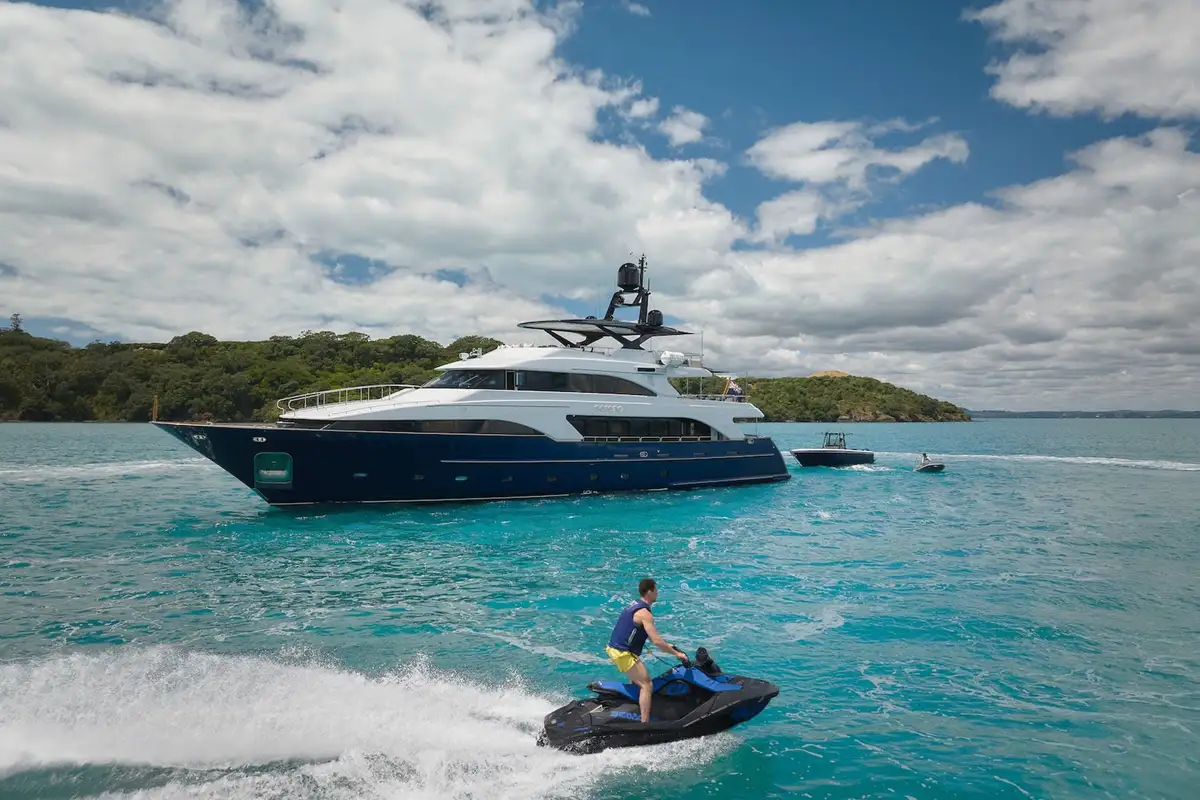 - Extensive water toy selection including 11.8m Intrepid chase tender, 2 x 627hp engines