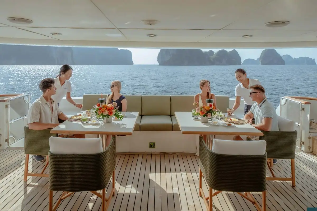 Indulge in culinary delights prepared by SILENTWORLD's professional chef, while you relax in the spacious main deck lounge or enjoy al fresco dining under the stars. Whether you're relishing breakfast or an intimate evening meal, the onboard experience is guaranteed to be unforgettable.