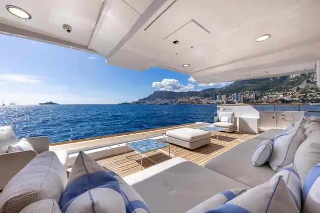 - Expansive retractable balconies off the main deck aft