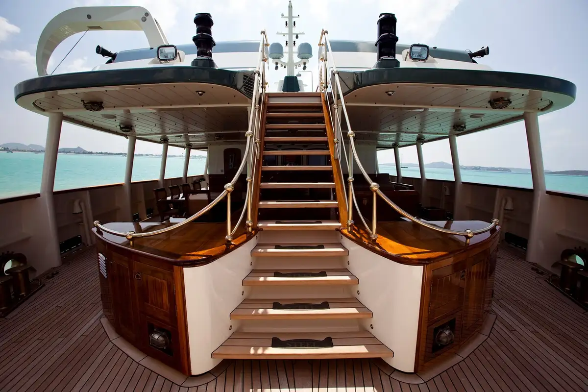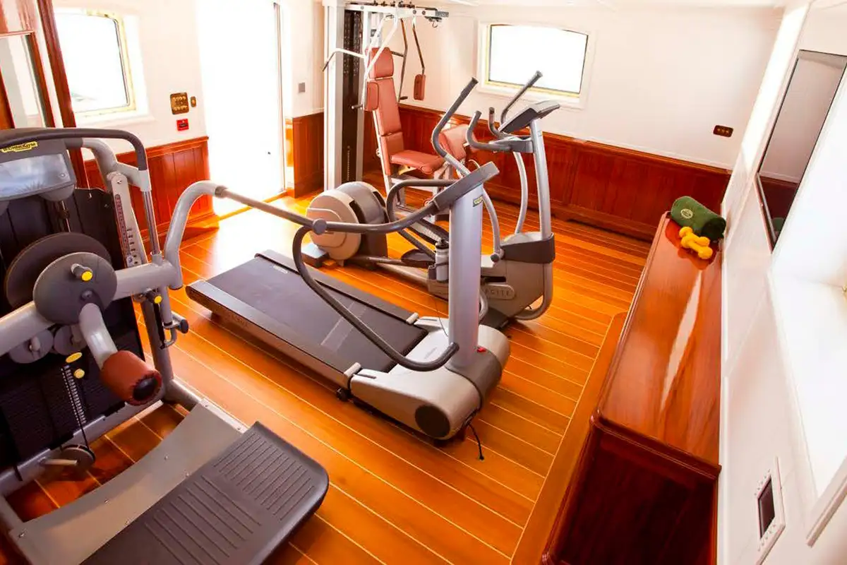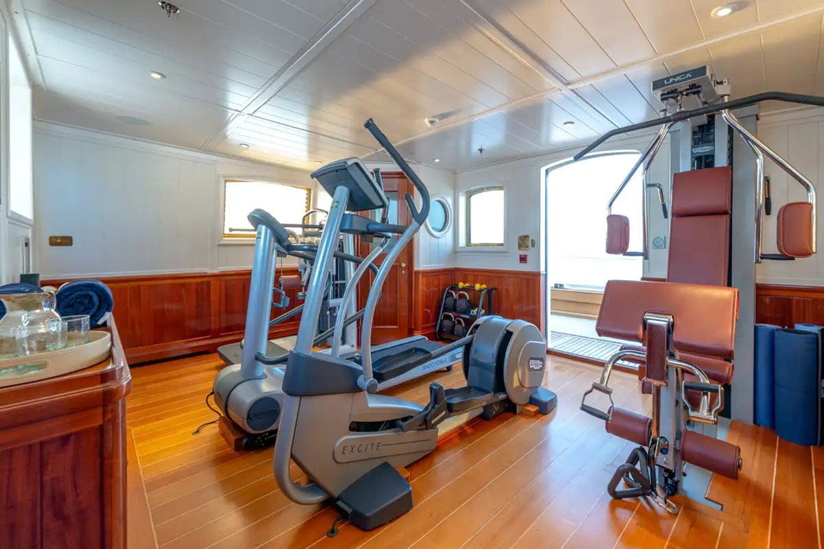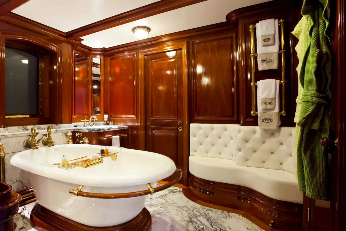 The first thing you note as you step on board STEEL is her multipurpose decks. Designed to be used in every climate, they offer uninterrupted living spaces. Head up to the top deck and relax in any one of a number of outdoor spots designed to offer her guests maximum privacy. Choose from two large sunbathing areas, separated by a deckhouse that houses an air-conditioned gym and steam room. Stepping down to the bridge deck, enjoy a leisurely lunch relaxing on the classic deck furniture beneath the shade of a canopy. Here you will also find a large jacuzzi and, with the tenders removed, more sun lounging space.