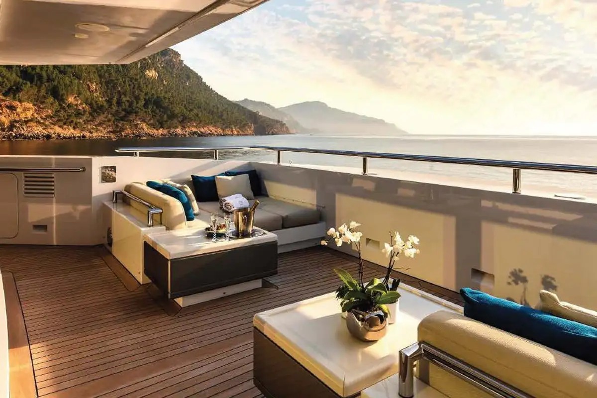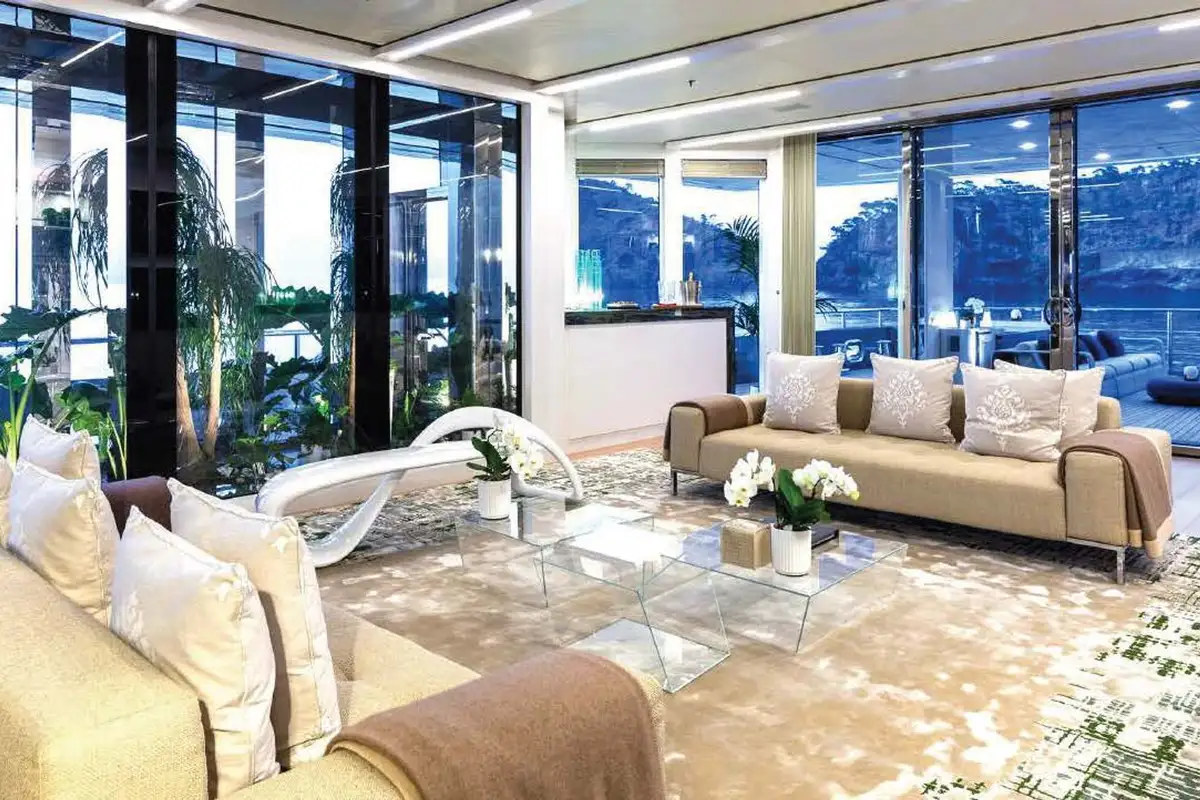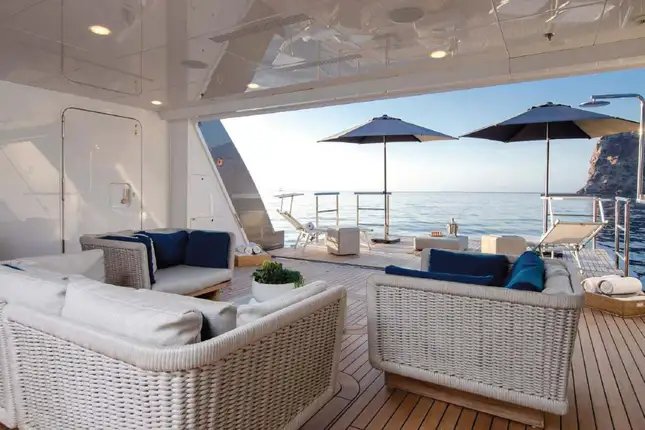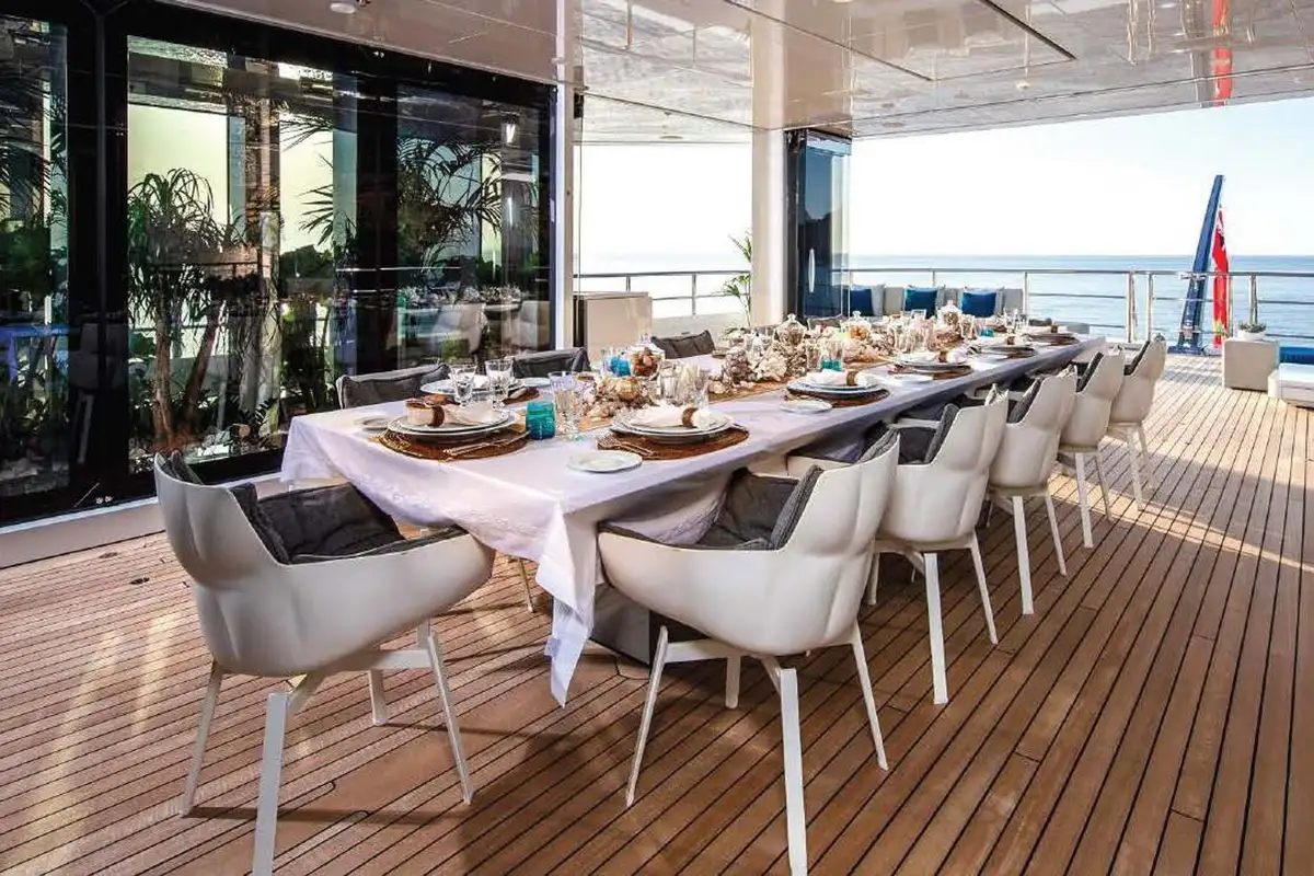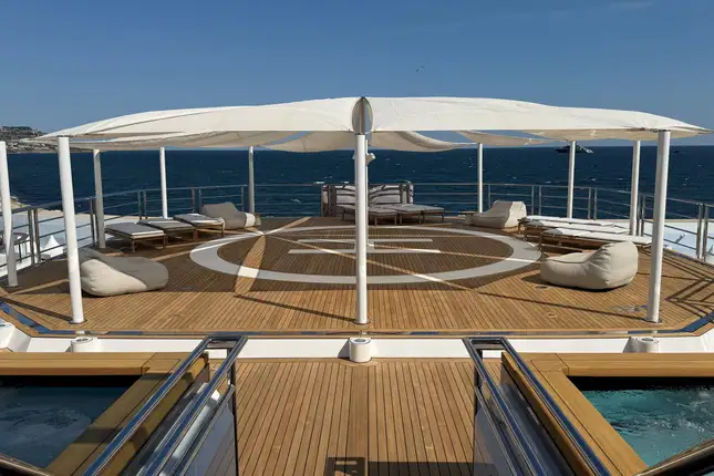 She offers a comfortable layout for its guests thanks to the minimal noise effect and vibrations on board with a sophisticated balancing and stabilizing system on board. Her helipad can easily be converted to an entertainment area capable of accommodating 100 people.