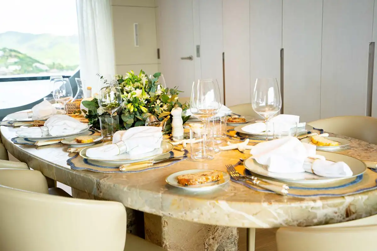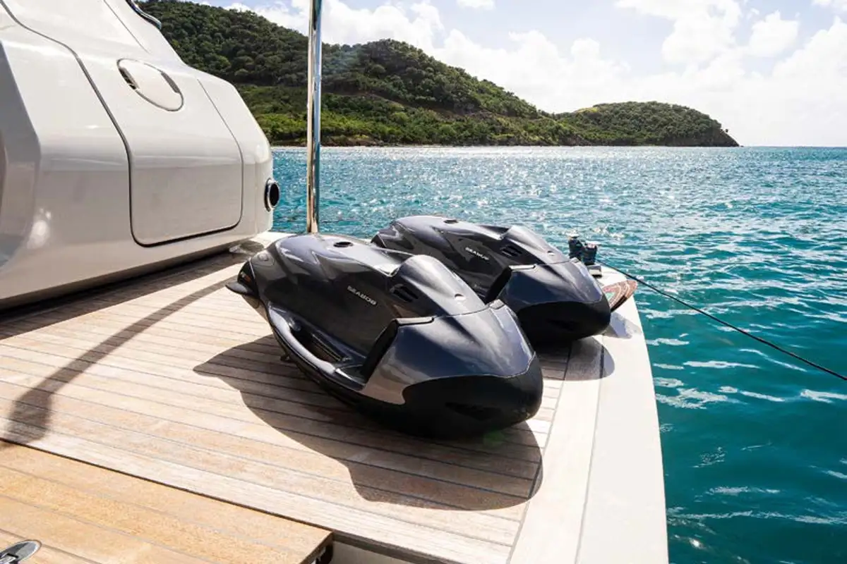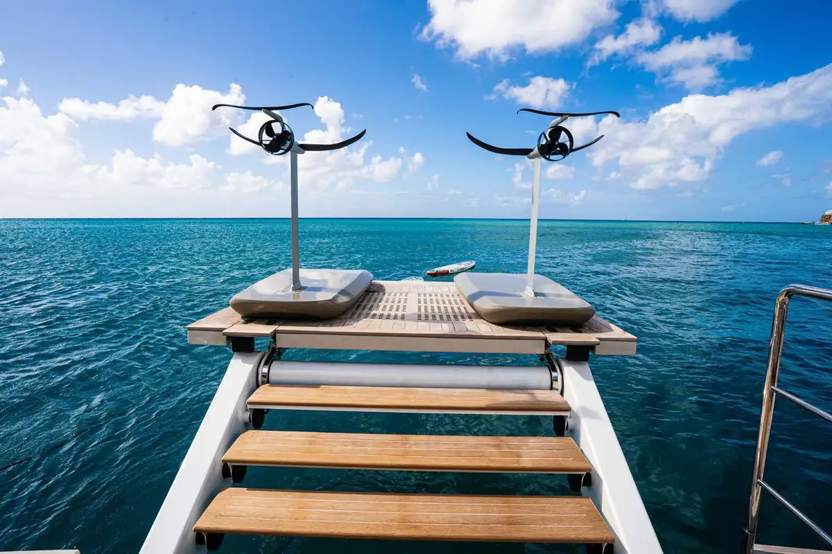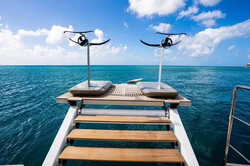 Stellamar’s toy box provides a treasure trove of fun, featuring two Flite boards, two Seabobs, nitrox diving equipment, snorkelling equipment, fishing gear, four paddle boards and four Go-Cycles. She is also well-equipped with gym equipment for long and shorter haul charters, with a Pelaton cycle machine, TechnoGym bench weights 1-10kg, and yoga mats. For access ashore Stellamar also has two tenders, while 5G/4G Starlink internet provides unbeatable connectivity in even the remotest of destinations.