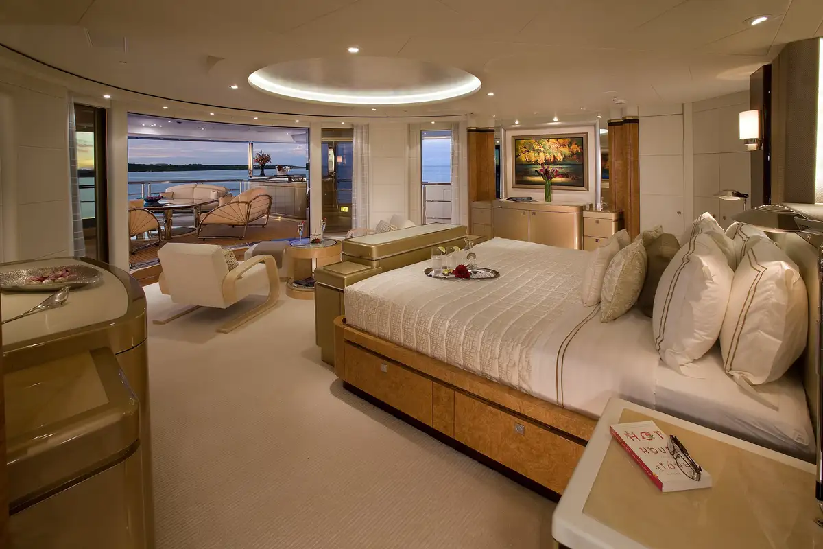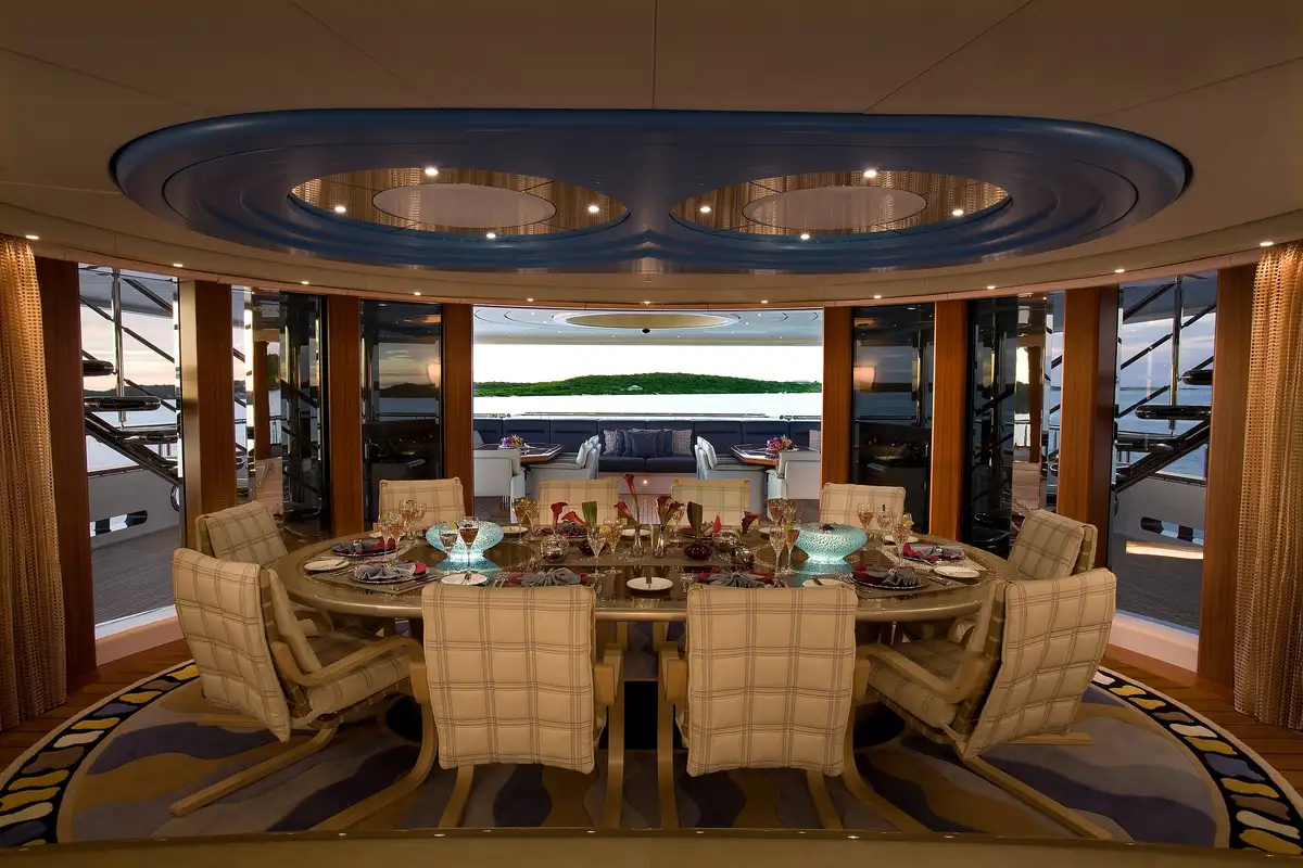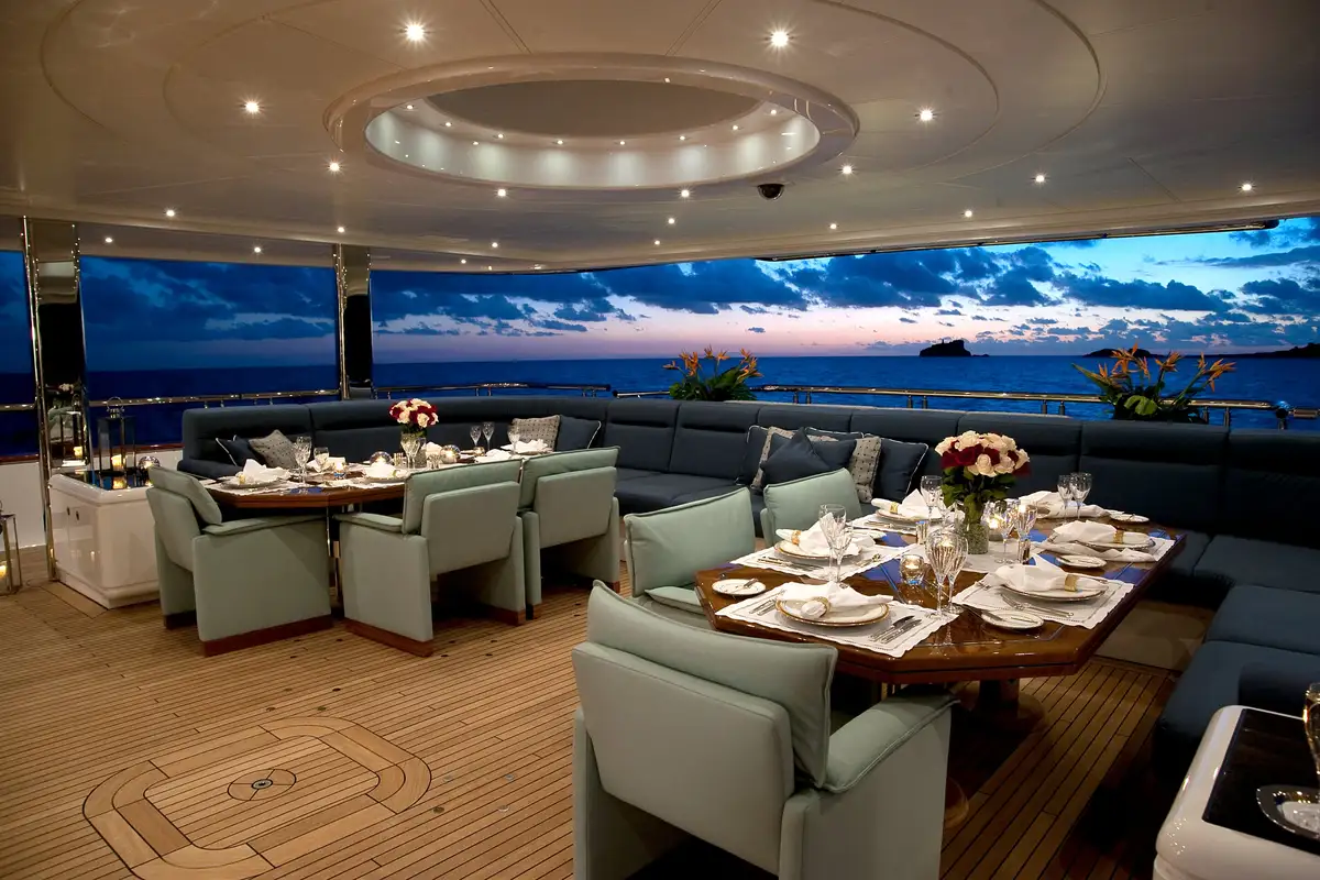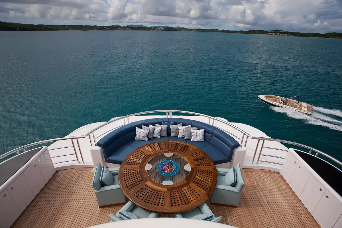Wake from a refreshing night’s sleep in the master suite and choose between breakfast on your private deck or joining everyone on the main deck aft. The convivial and versatile dining space leads seamlessly onto the interior dining table when the full height sliding doors are opened.