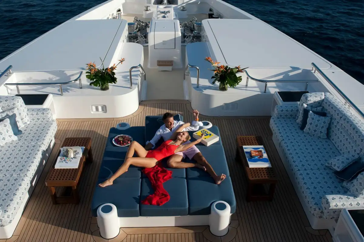 Romantic sundowners are served on the Portuguese bridge for a stunning view of the anchorage, before you are whisked away to a nearby shoreline by tender to enjoy one of SYCARA V’s famous beach BBQs, with lively music and barefoot dancing on the sand.