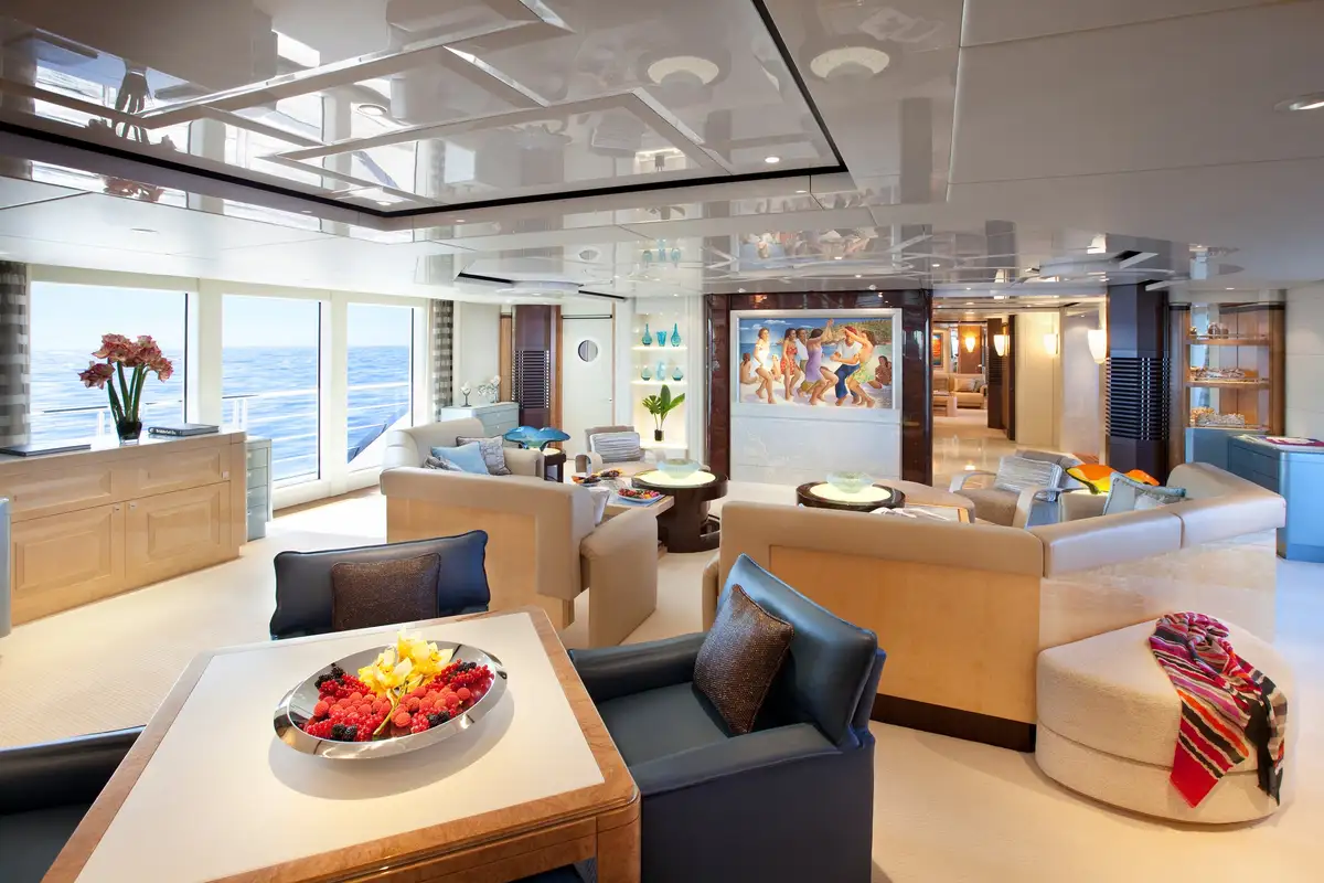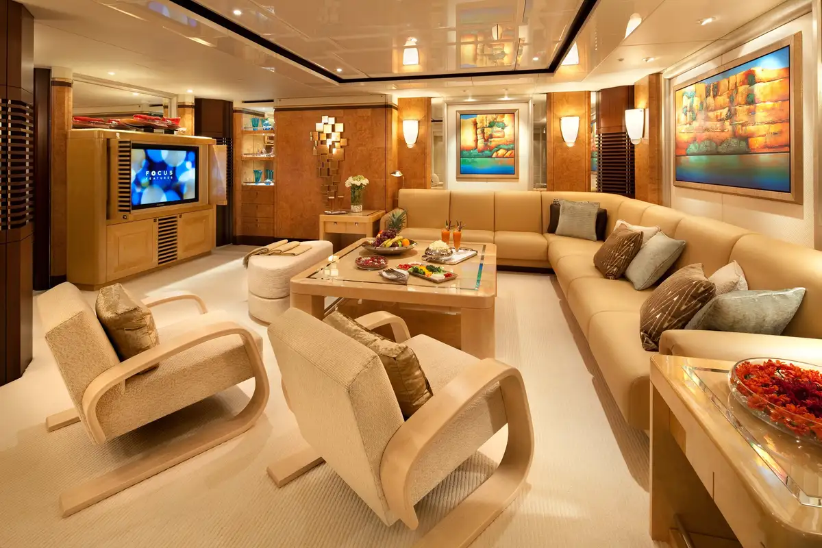 Take the elevator to the sun deck to find a delightful setting for lunch, cooked on the grill and served at the shaded circular table. Afternoons are often spent on the sun deck, perhaps with a workout and massage in the gym and spa, before a dip in the large jacuzzi and rest on the various sun pads and sofas nearby. The children enjoy a movie in the library lounge, while the sports fans watch a game at the lounge bar with snacks and a glass of something refreshing.