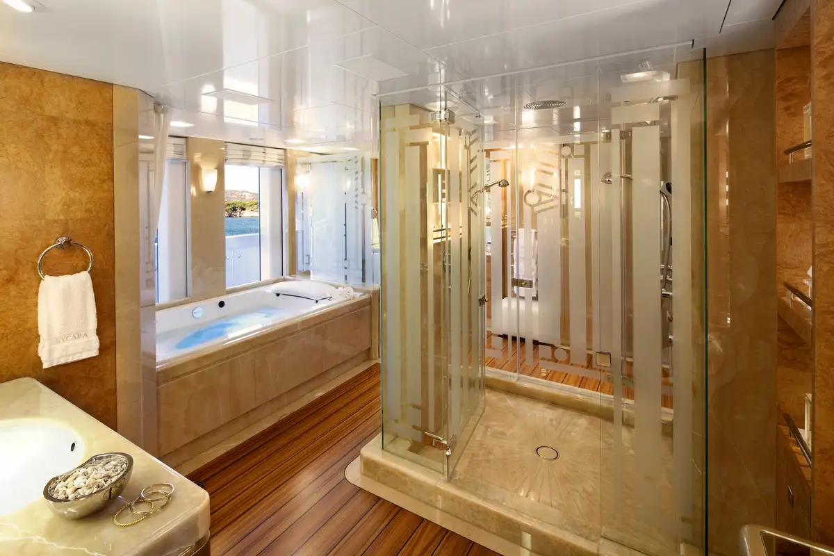 SYCARA V’s inventory of watertoys features all the greatest hits, from jetskis, wakeboards and waterskis to kayaks and inflatables. With a large swim platform and lounge, bar and shower, the beach club is a popular base for a morning’s aquatic activities.