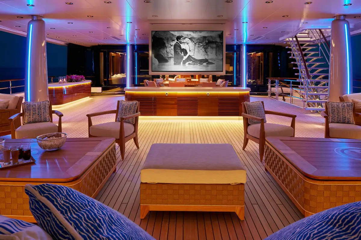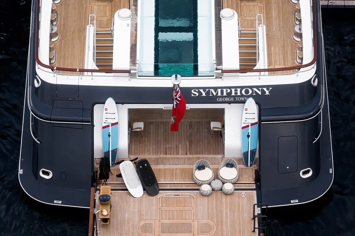 Kick off the evening's entertainment with a sundowner in the comfort of the sumptuous seating area on the owner’s deck aft, followed by a gastronomic extravaganza served al fresco style on the same deck. For a more formal occasion, why not ask the crew to set up an alternative tablescape in the main deck dining room. Dinner is followed with more choices. Settle into the plush tiered seating for a movie in the lower deck cinema, or alternatively out on the bridge deck outside cinema, or perhaps you’d rather dance the night away in the dedicated disco area located on the lower deck. However you wish to spend your evening aboard, SYMPHONY’s crew are on hand to ensure your every whim is catered for.