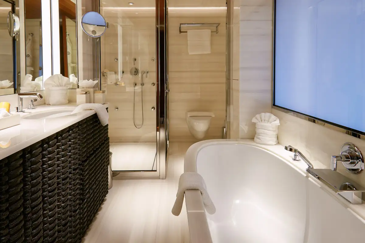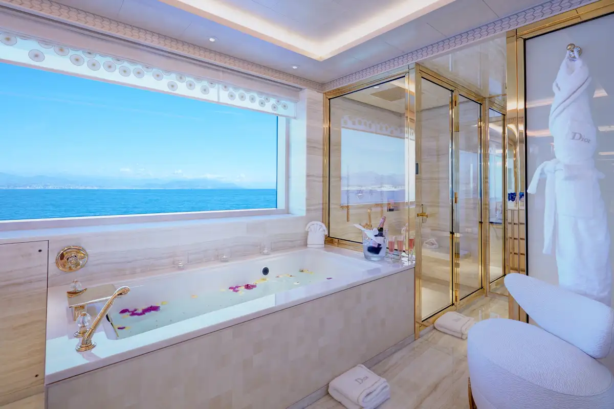 Back on board, make for the lower deck wellness centre with sauna and hammam, head up to the main deck for a swim in the large pool with jet stream current or workout in the fully-equipped gym. There is even an automatic golf tee-off platform for the golfing enthusiasts who might be missing their regular round at home. Every workout deserves a reward though, and SYMPHONY’s facilities are dedicated to relaxation. Whether you want a massage from the on board masseuse or a beauty treatment in the salon, or simply to relax in your sumptuous accommodation, come dinner time you will surely be fully refreshed for a night of revelry.
