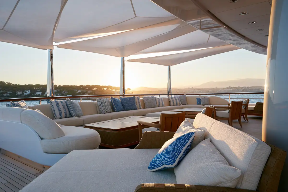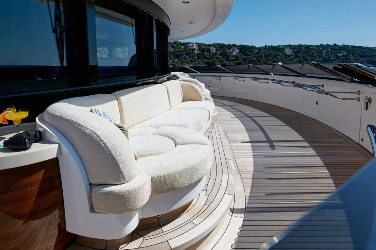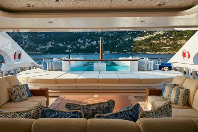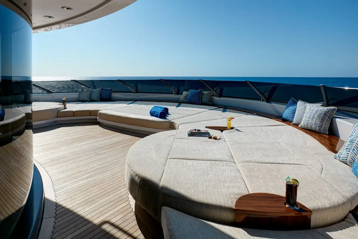 - Private owner's deck with private jacuzzi forward with lounge pads and small dining table