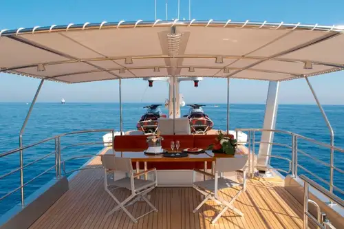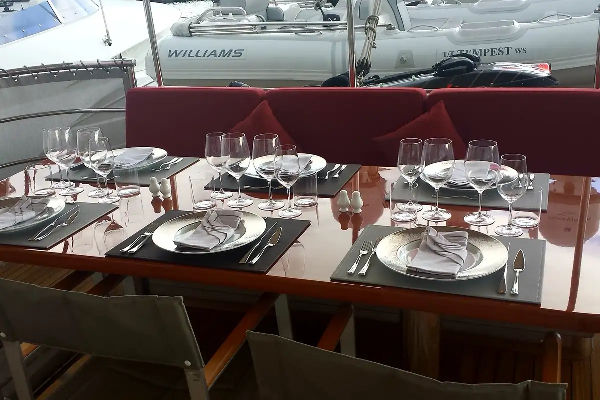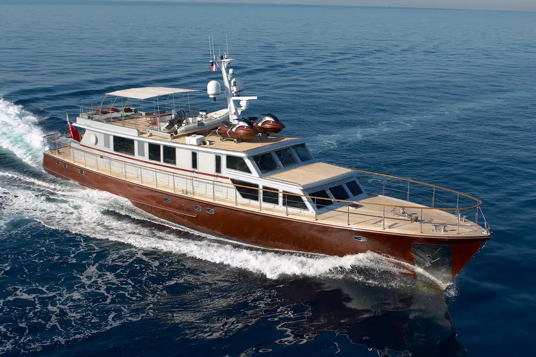 Originally built as a patrol boat at the Chantier de l'Esterel yard, TEMPEST WS has been completely restored in 2009 - 2010 and now boasts a light and contamporary interior. With a large Owner's Suite on the main deck, a VIP and two twin cabins below deck, and separate crew accommodation for 5 crew, she offers spacious common places, superb sunbathing areas and a shaded aft deck. A true pedigree, TEMPEST WS is the perfect way to cruise the Mediterranean with speed and comfort.