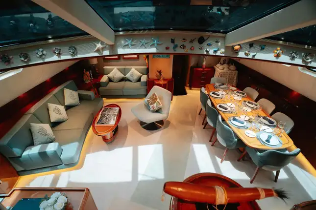 Charter guests can take advantage of THANDEKA’s watersports collection, which includes a jetski, towable inflatables, paddleboards, scuba diving and snorkelling equipment. For those wishing to explore ashore, electric bikes are available, offering an enjoyable way to discover hidden beaches, villages, and coastal scenery.