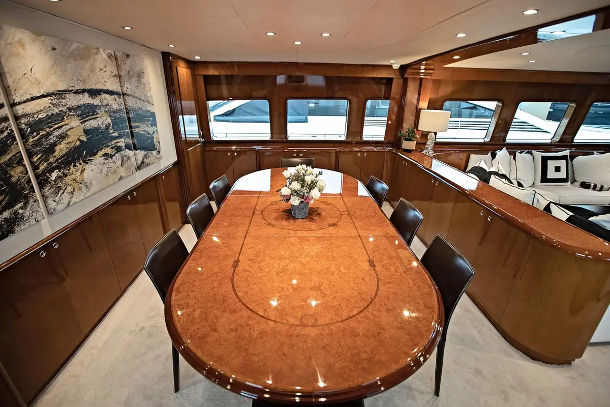 Her sleek exterior lines were drawn by Francesco Paszkowski and her timeless interior by Stefano Natucci, both noted in their respective design fields.