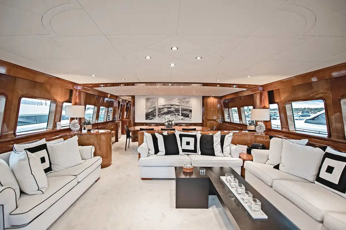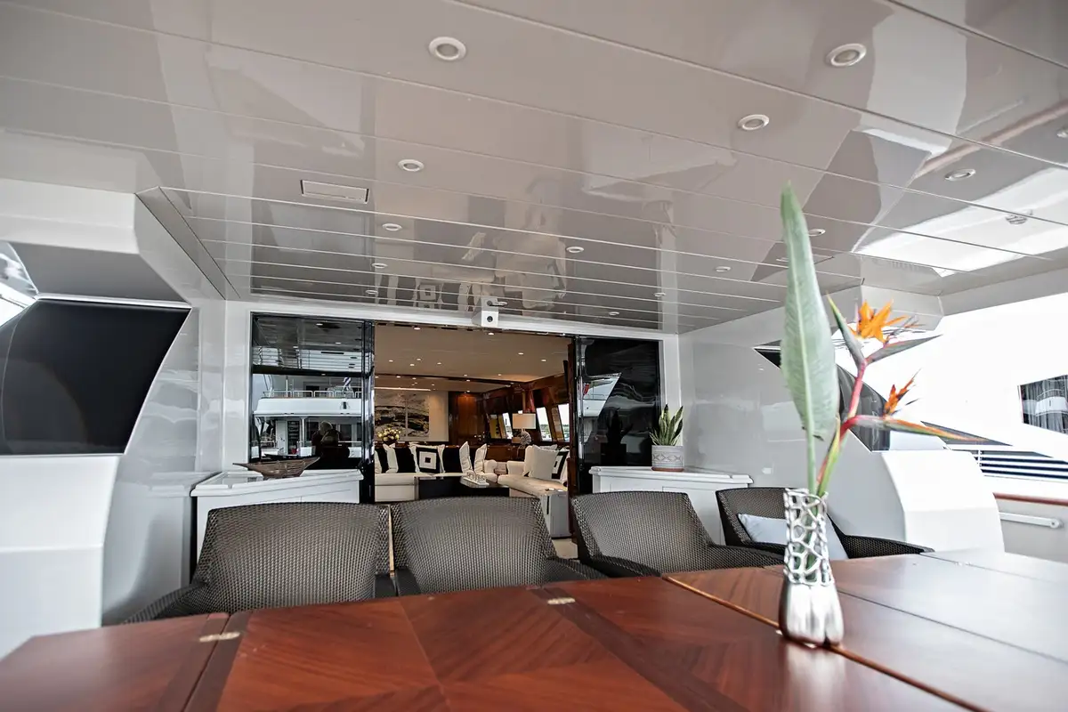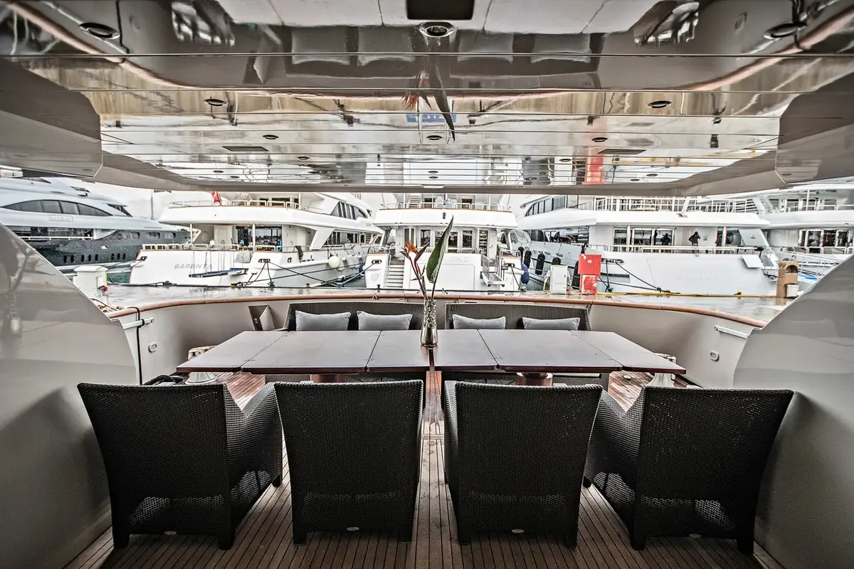 She offers large guest deck spaces including an ample sundeck with sun lounging areas.