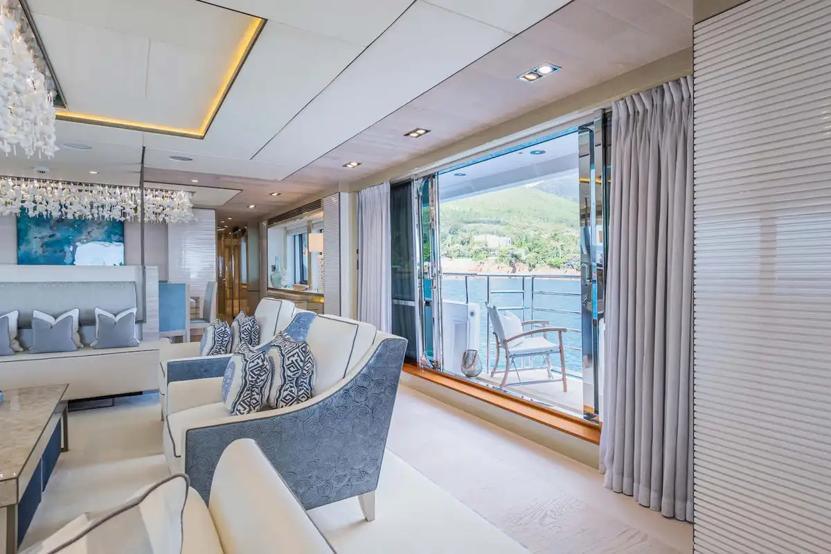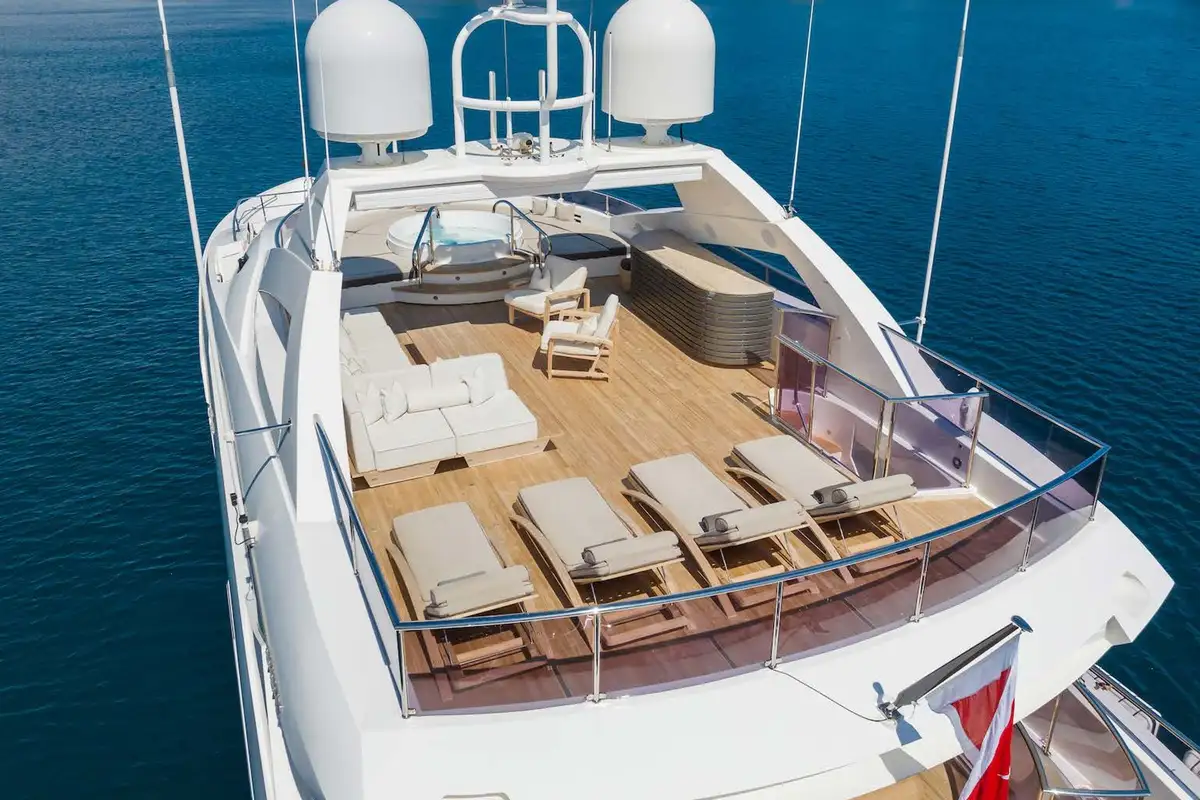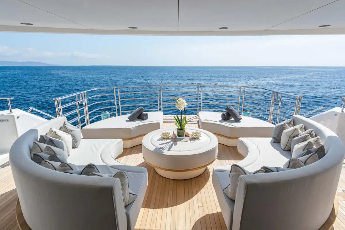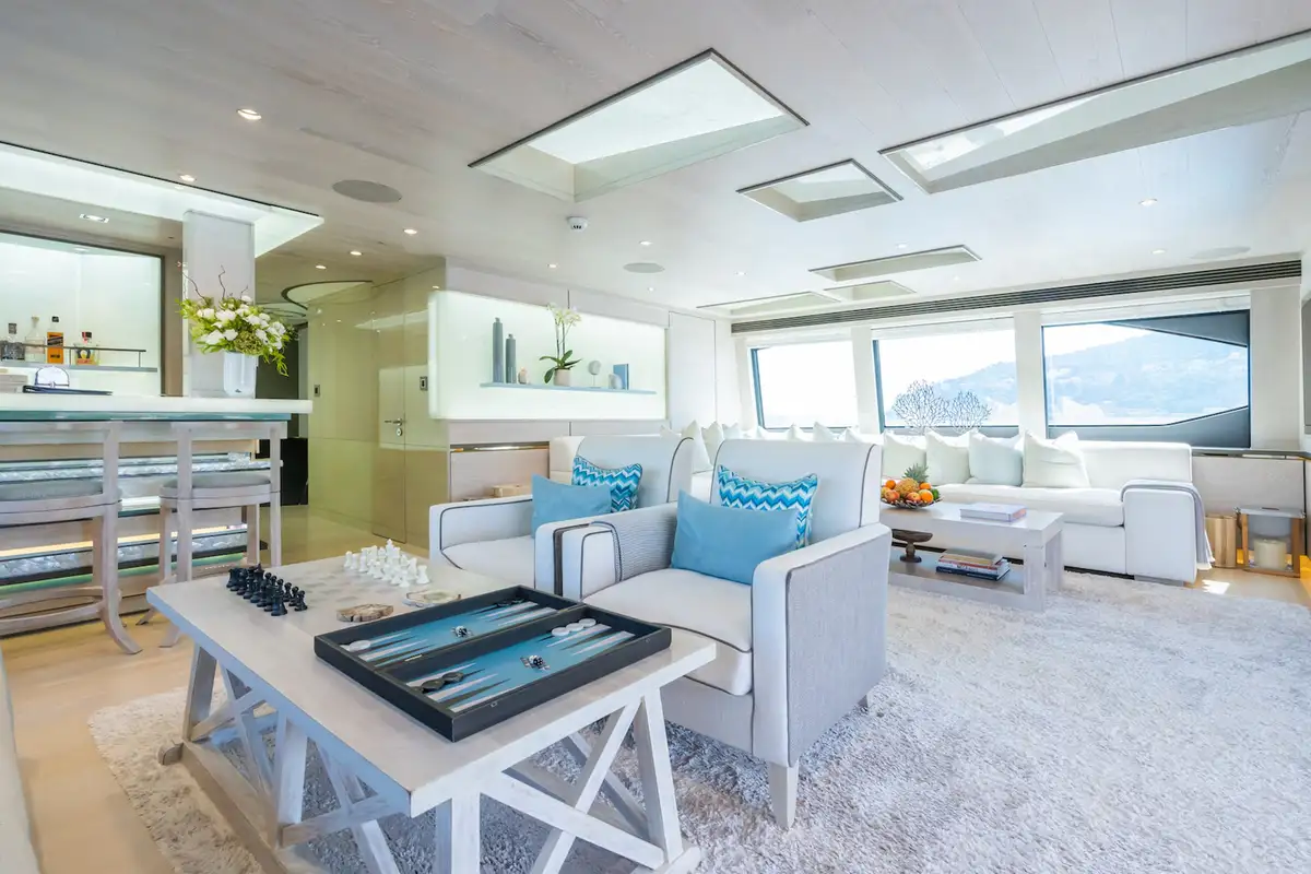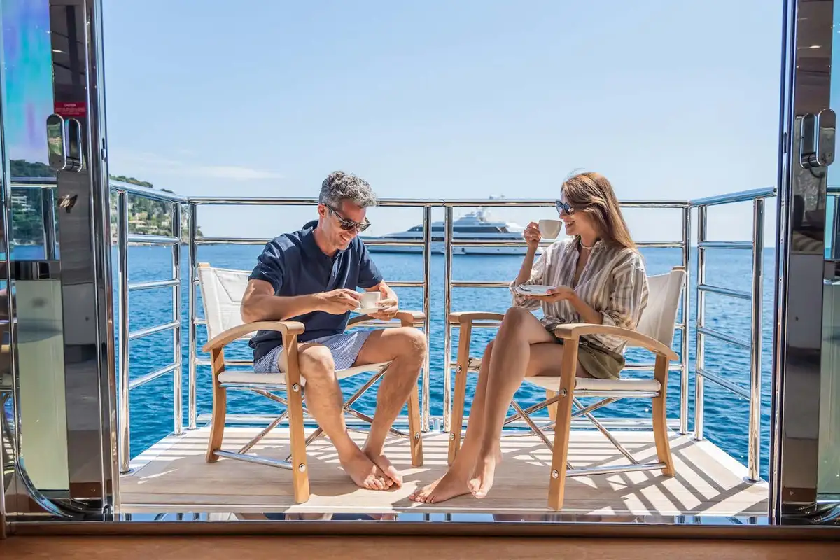 A relaxed lunch is served on the main deck aft, with a selection of delicious local produce creatively presented by the talented chef. Sun worshippers will want to make their way up to the sun deck, with its bubbling jacuzzi flanked by a vast bank of sun pads. The comfortable sofas, freestanding chairs and selection of sunloungers are the perfect place to relax and soak up some rays.