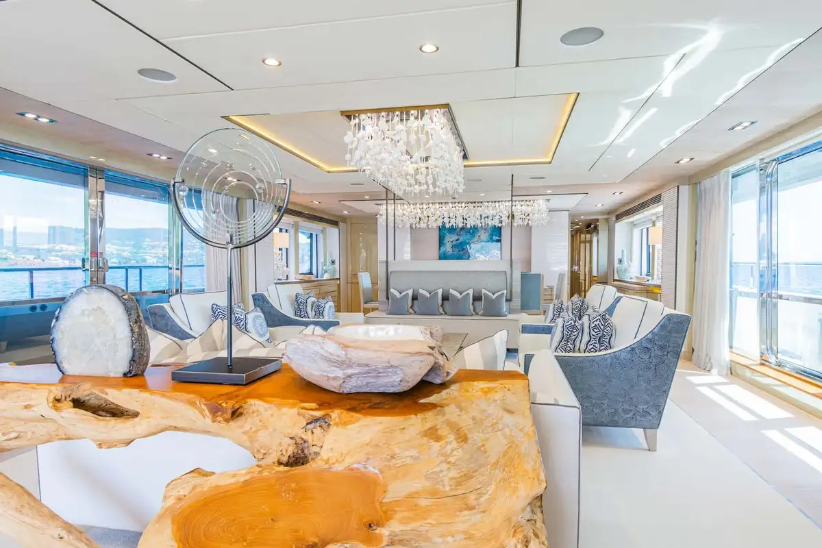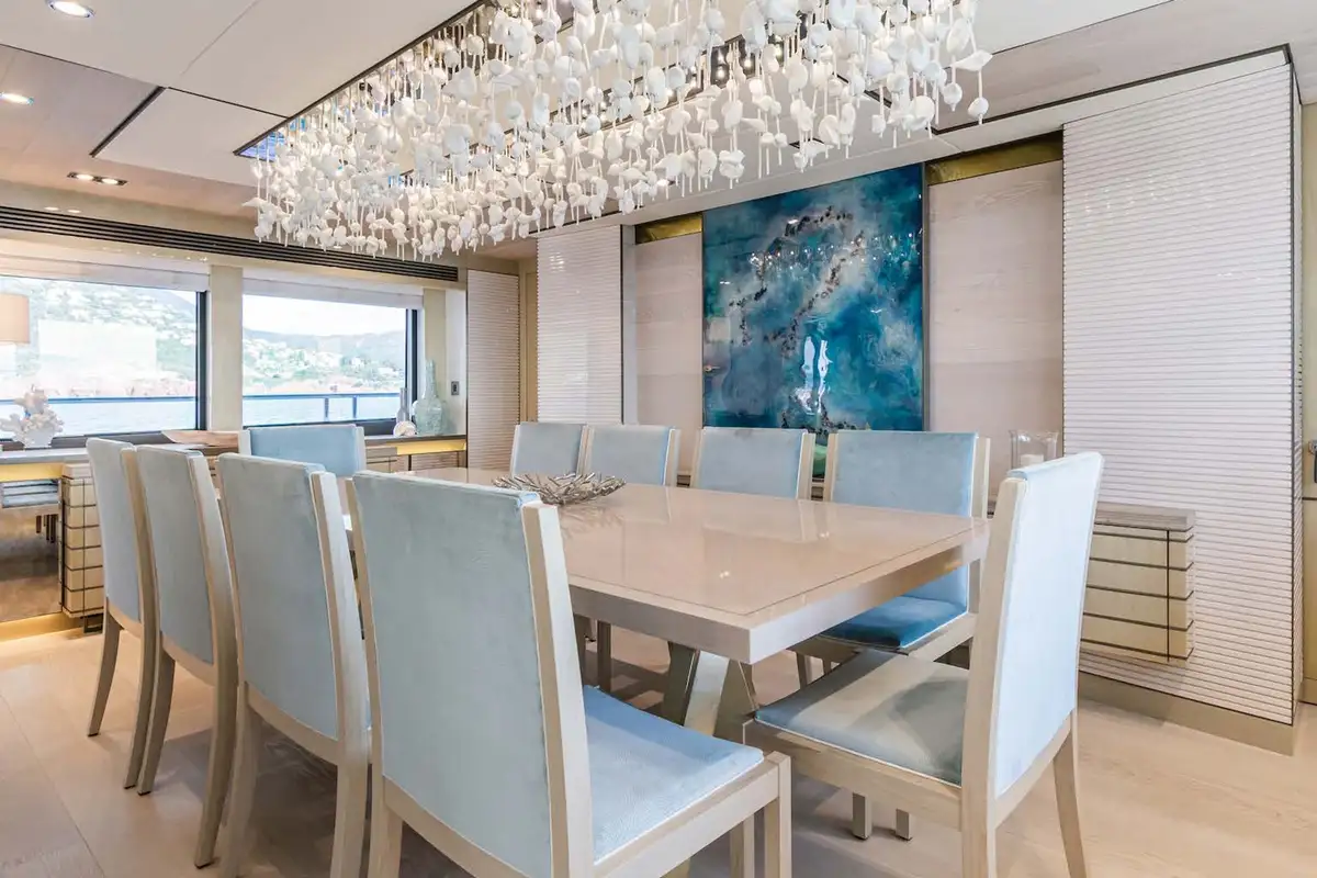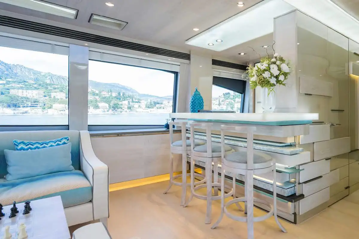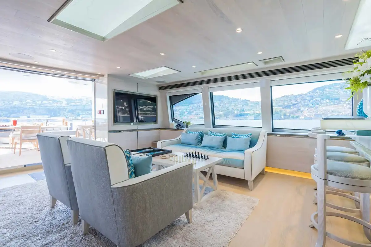 A relaxed lunch is served on the main deck aft, with a selection of delicious local produce creatively presented by the talented chef. Sun worshippers will want to make their way up to the sun deck, with its bubbling jacuzzi flanked by a vast bank of sun pads. The comfortable sofas, freestanding chairs and selection of sunloungers are the perfect place to relax and soak up some rays.