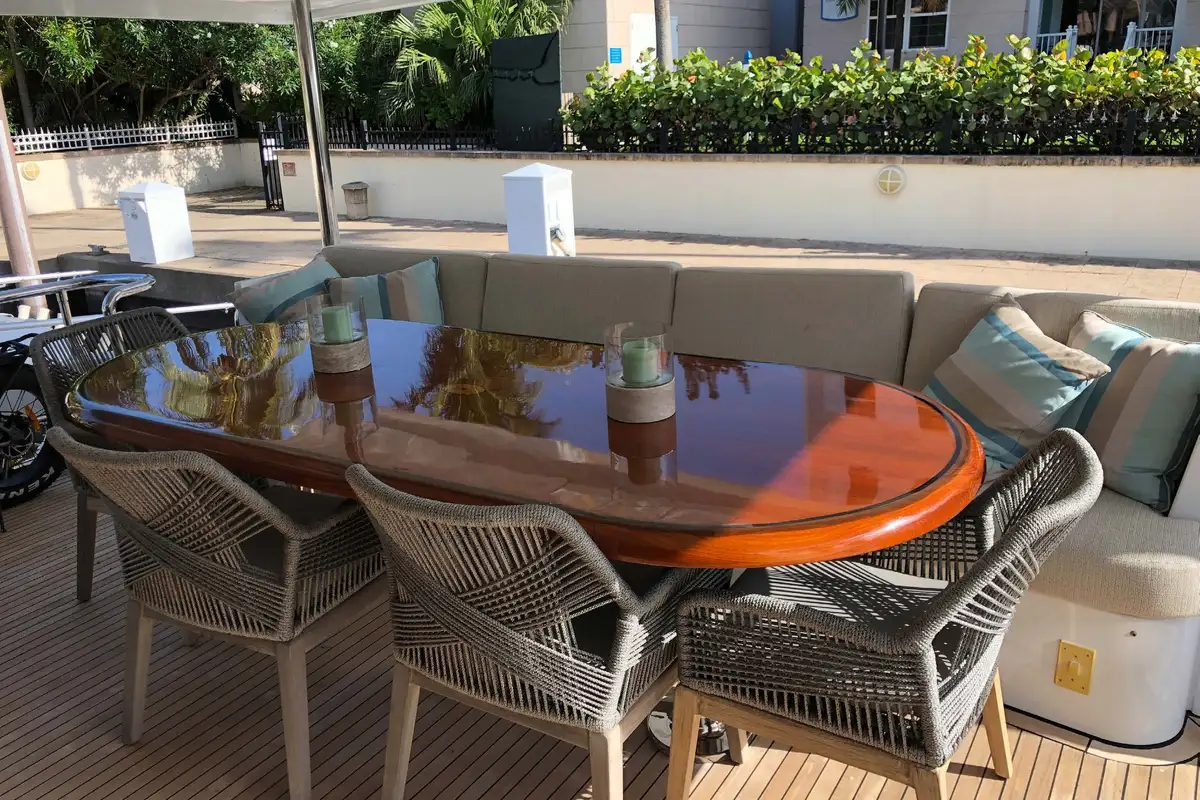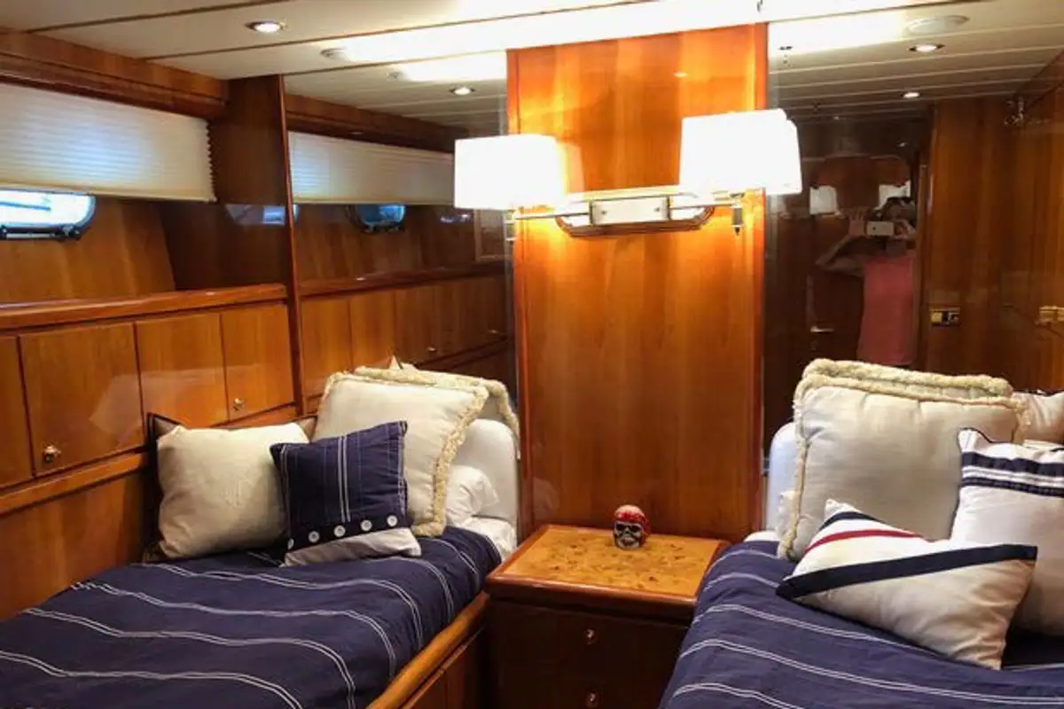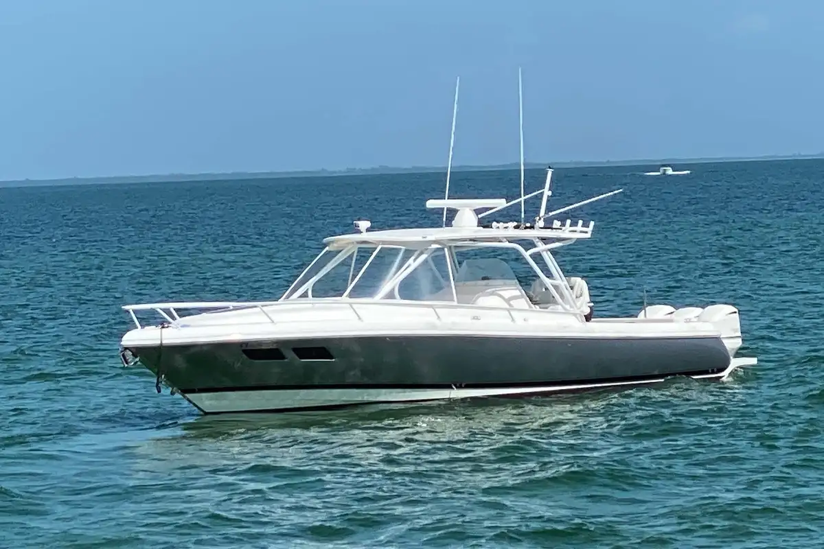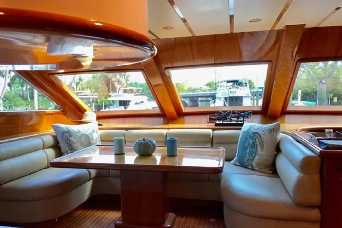 Tortuga's comfortable interior layout sleeps up to 7 guests in 3 staterooms, including a full beam King master suite with large windows that open and offer panoramic views for an open air experience , 1 queen cabin and 1 twin cabin that converts to a king. (with Pullman). All guest rooms have ensuite bathrooms/showers. A fresh interior refit includes a modernized interior, top of the line electronics and sumptuous seating throughout creates an elegant and comfortable atmosphere. The Sky Lounge features fully enclosed (and Air conditioned) helm station on flybridge. Also has comfortable seating for 8-10 with amazing 360 views while cruising. At the dock it creates another huge entertainment zone with additional TV/Stereo/BBQ Grill /Bar/ice maker. She tows a large 37' Intrepid perfect for cruising those scheduled areas! This is an 82 footer that lives like 100'+!