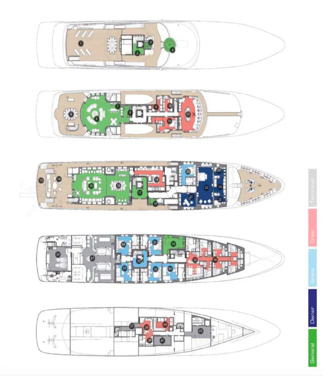 - Zero speed stabilisers to reduce any rolling motion while at anchor