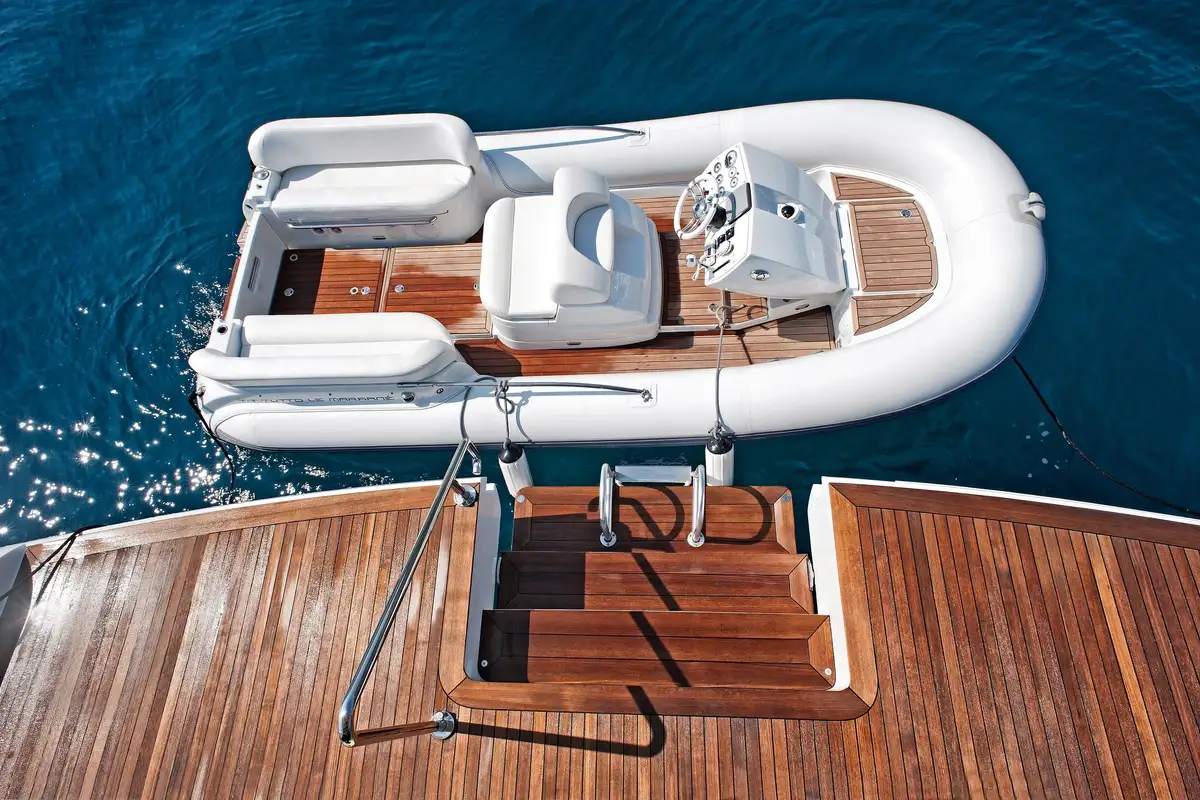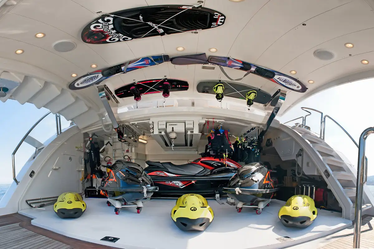 Imagine skimming across warm turquoise waters at 36 knots. Your party is on the sundeck, some enjoying cocktails from the bar, others relaxing on the large sunpads in the warm sunshine. Your captain is taking TUTTO LE MARRANE to a beautiful private bay for you to make the most of her collection of water toys.