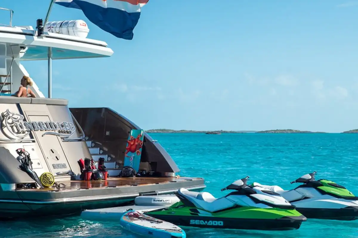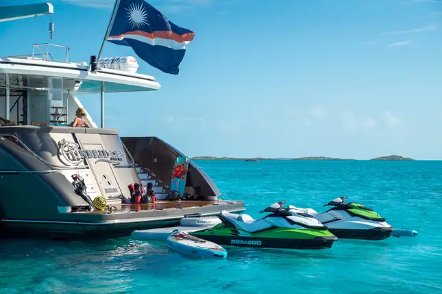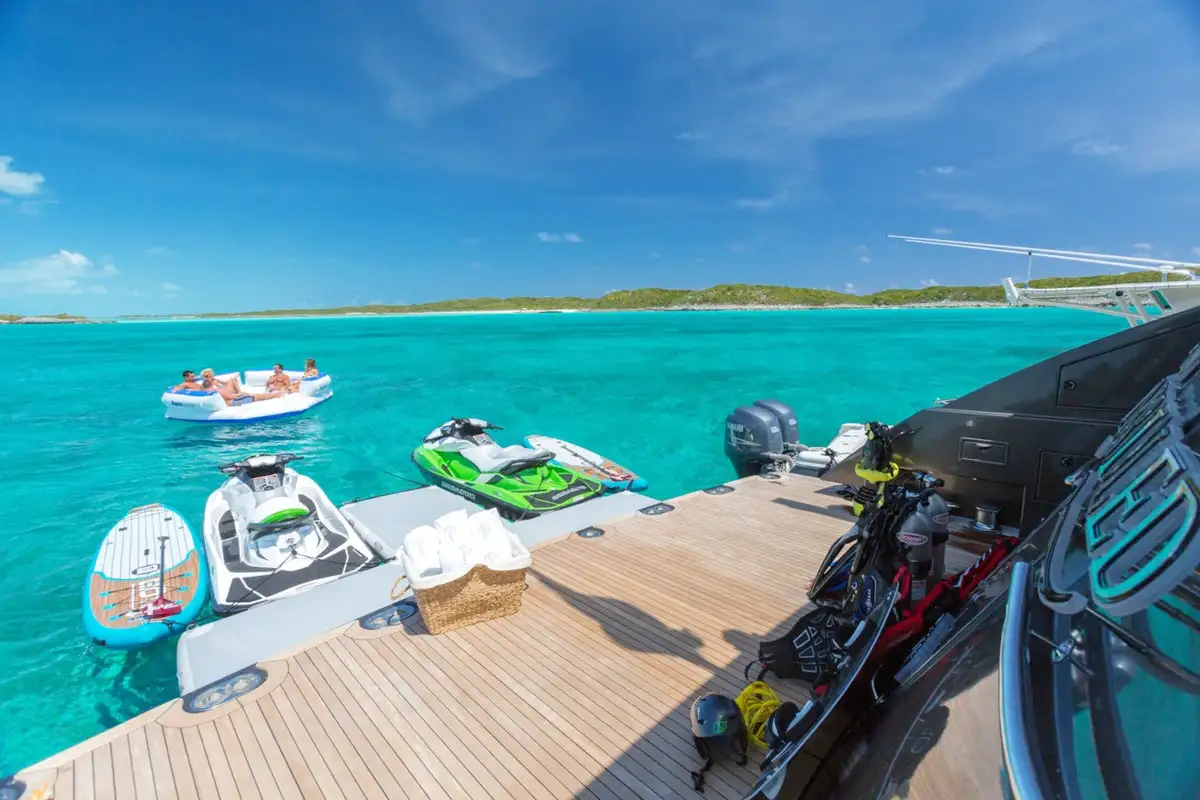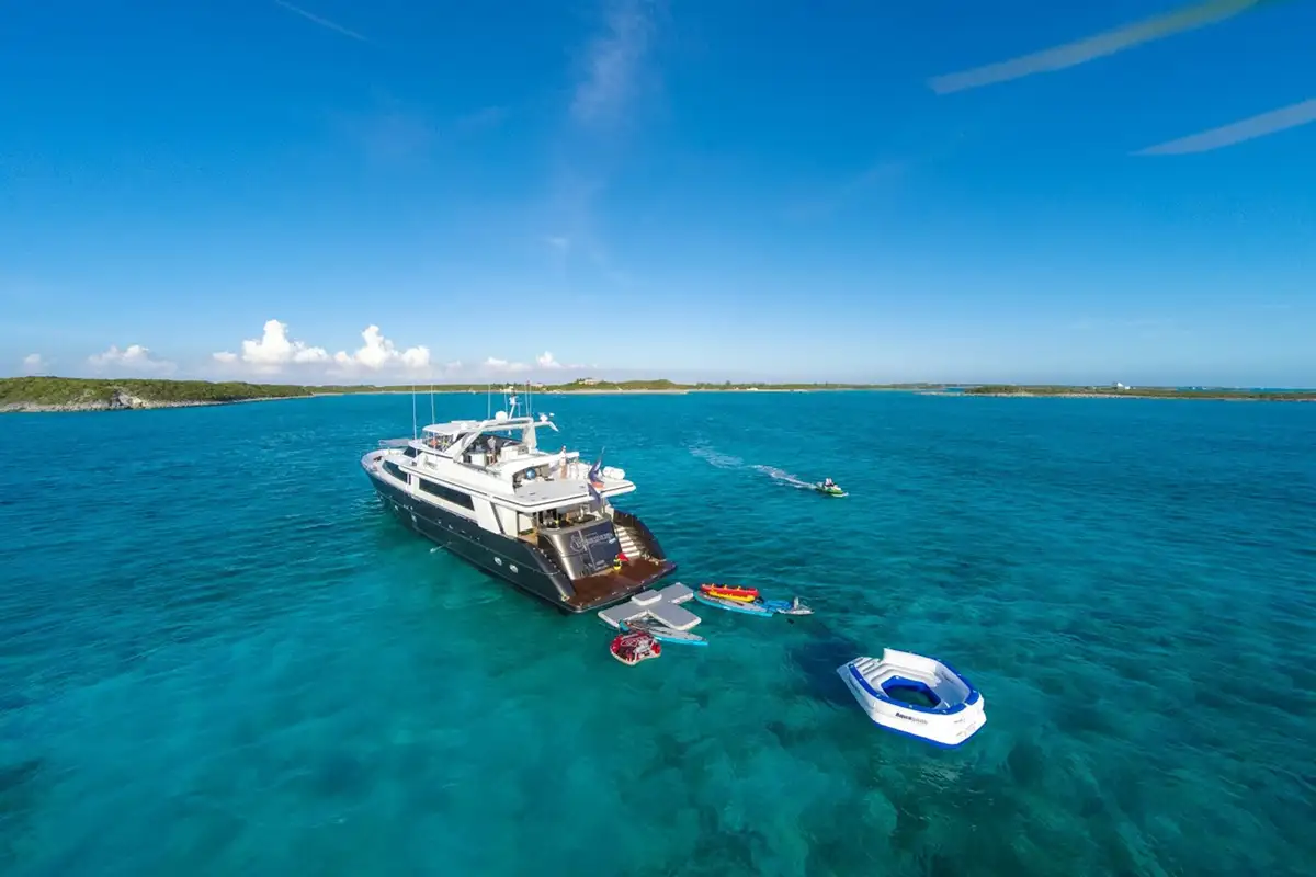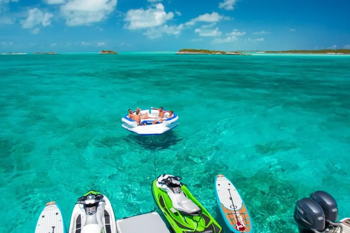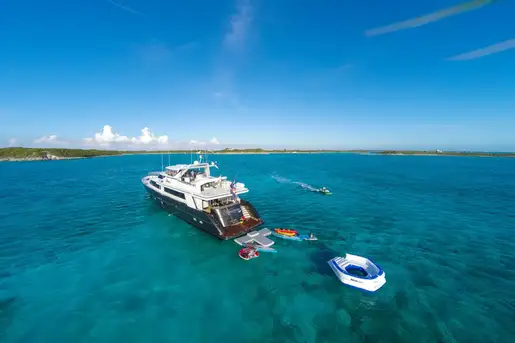 Anchor off Princess Margaret Beach to enjoy pristine shallow, sheltered waters along a fine sand beach. When you're ready, take your tender north around Princess Point to visit the floating bar.