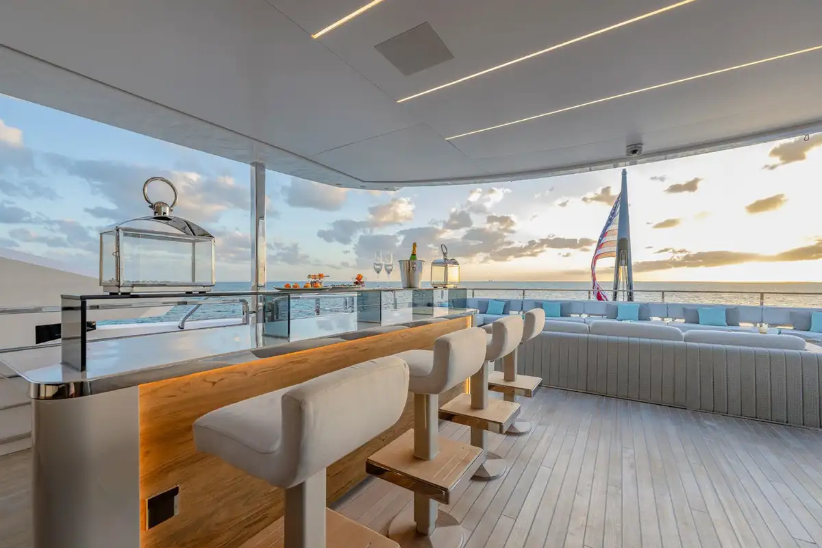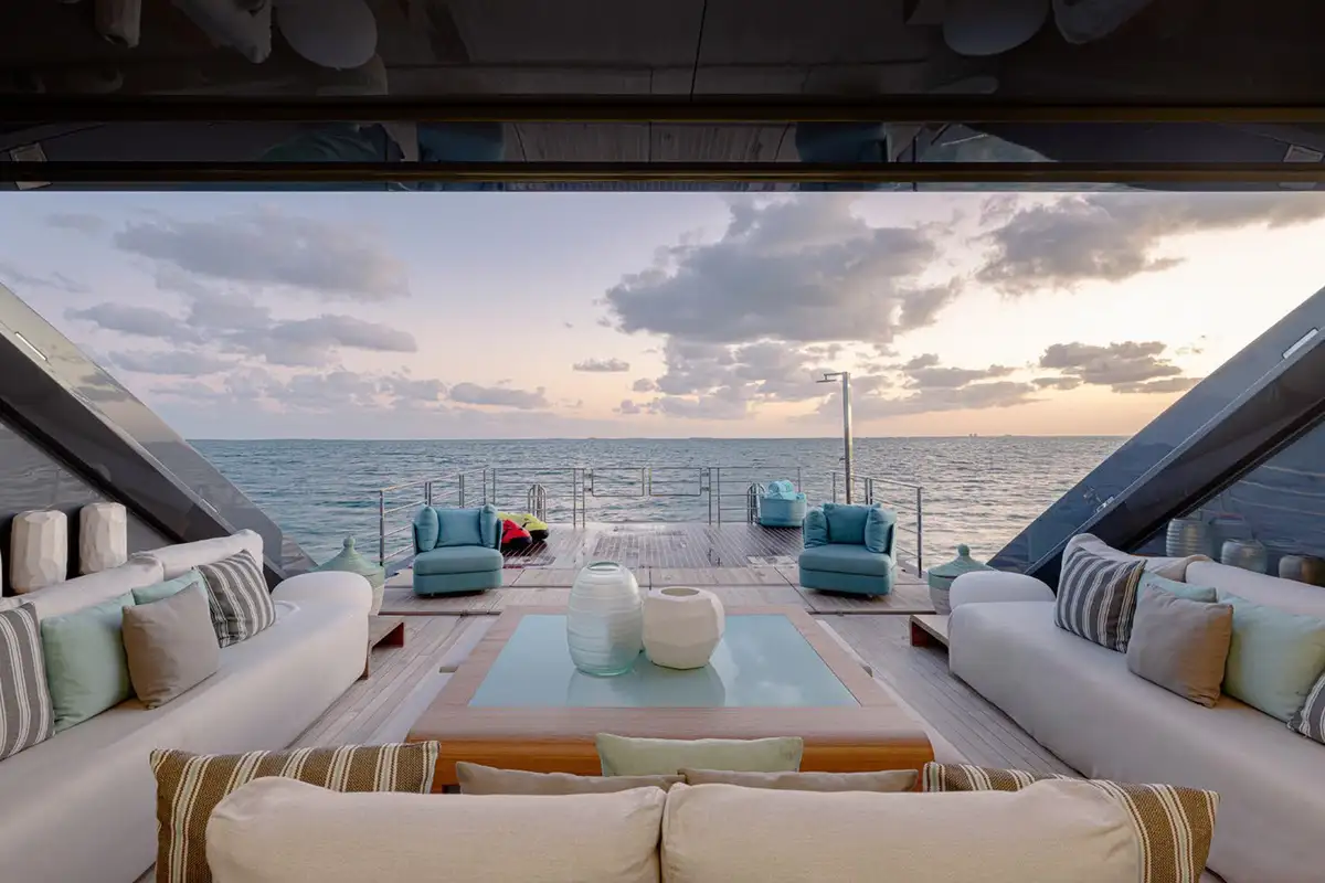 Like an ultra-chic penthouse on water, UTOPIA IV brings an understated cool to your charter. Warm creams and muted jewel tones combine with uplifting lighting to elevate your mood, while a multitude of exterior spaces and a stunning beach club create the perfect setting for a family-friendly trip to remember.