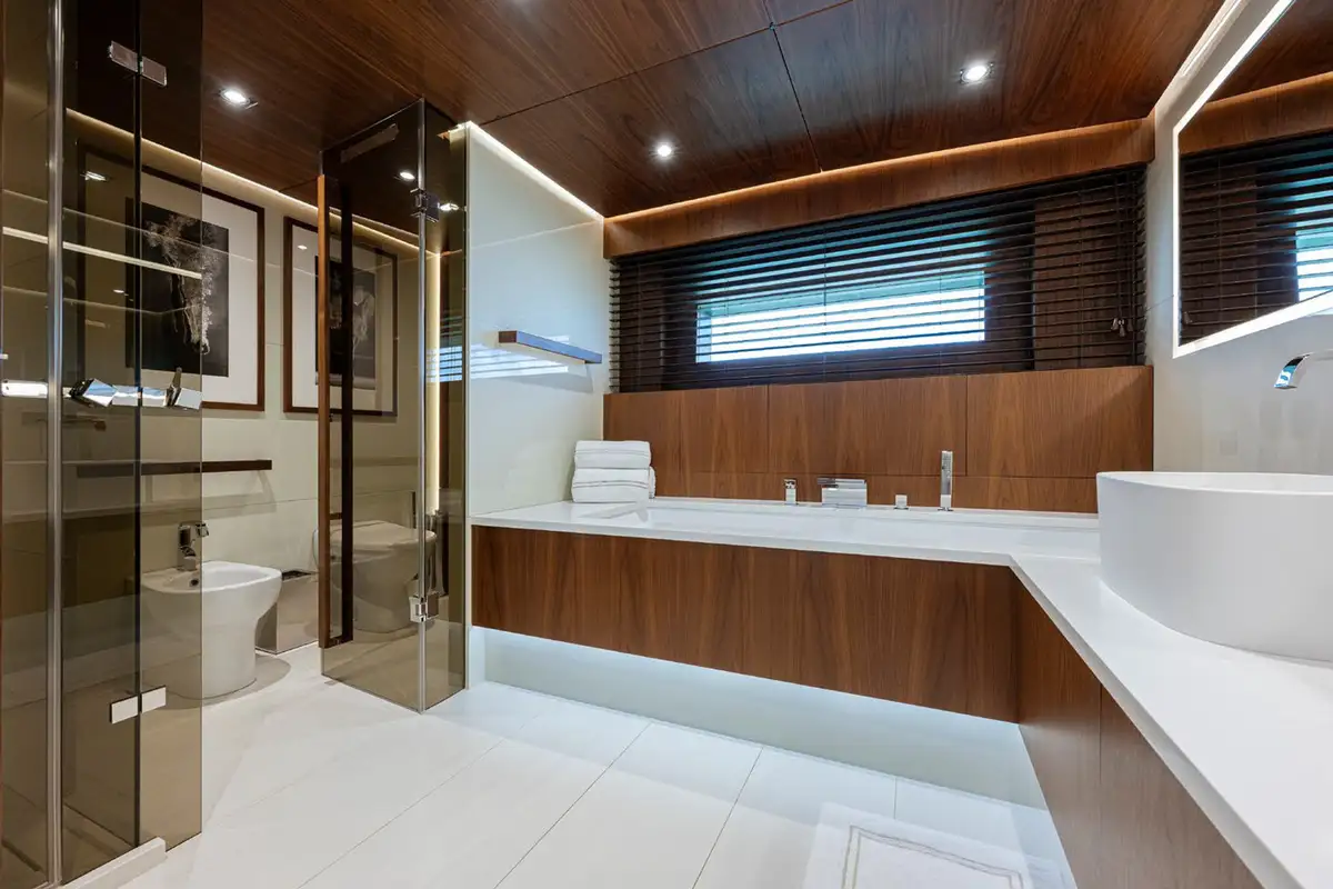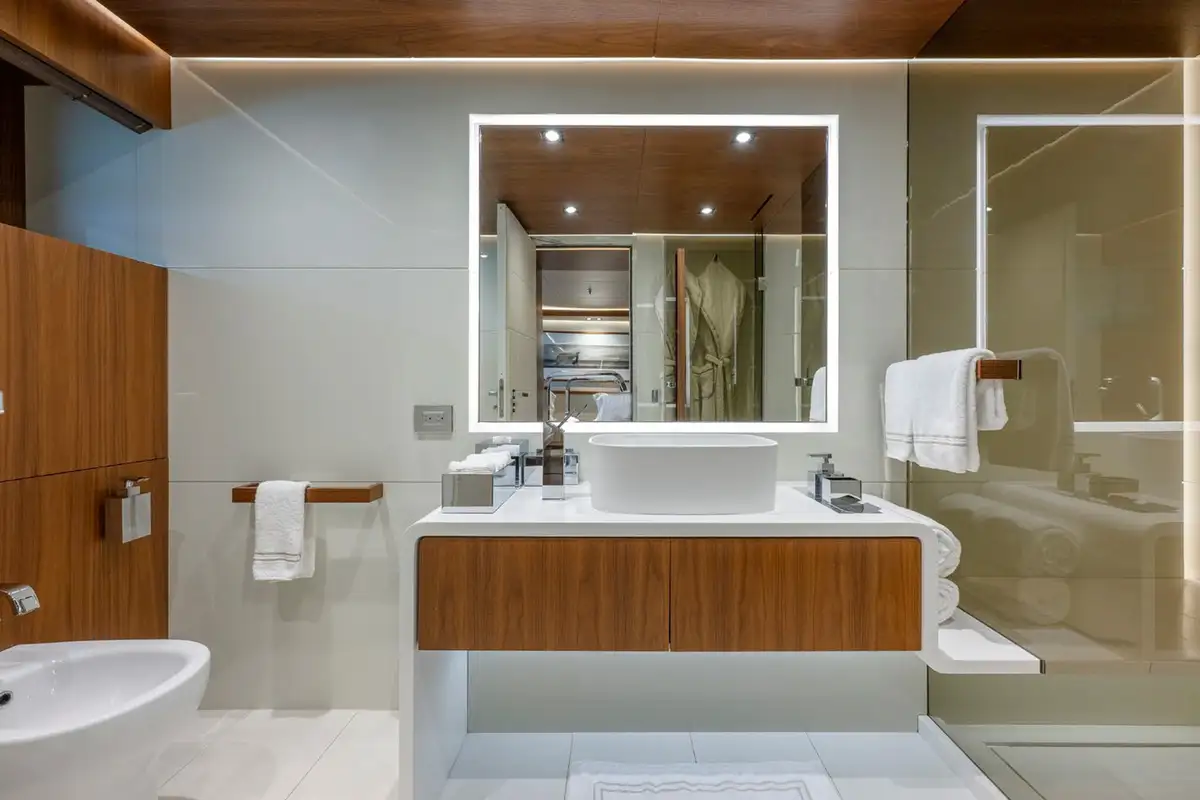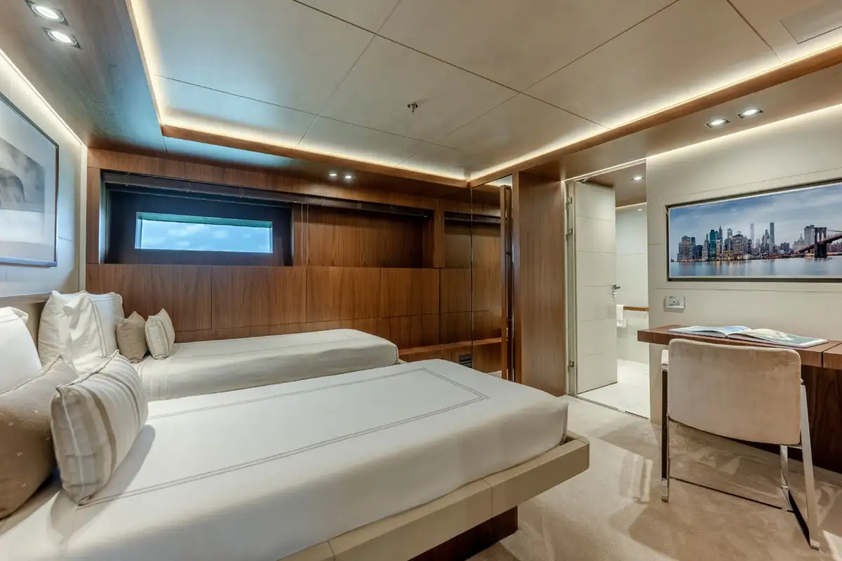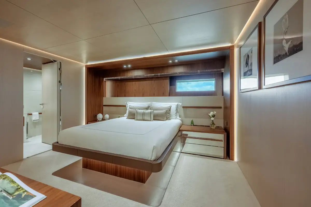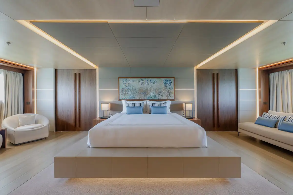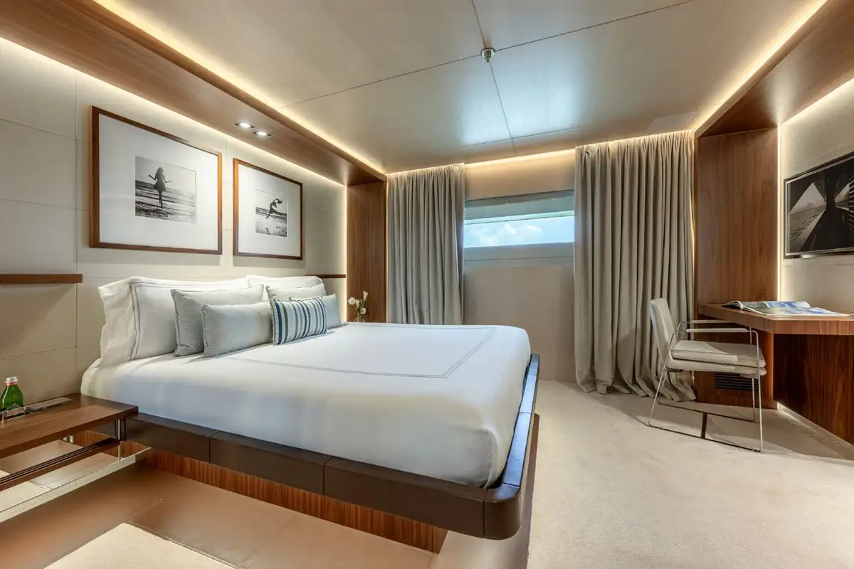 - Main deck master cabin with vanity suite, luxurious bathtub, and private balcony