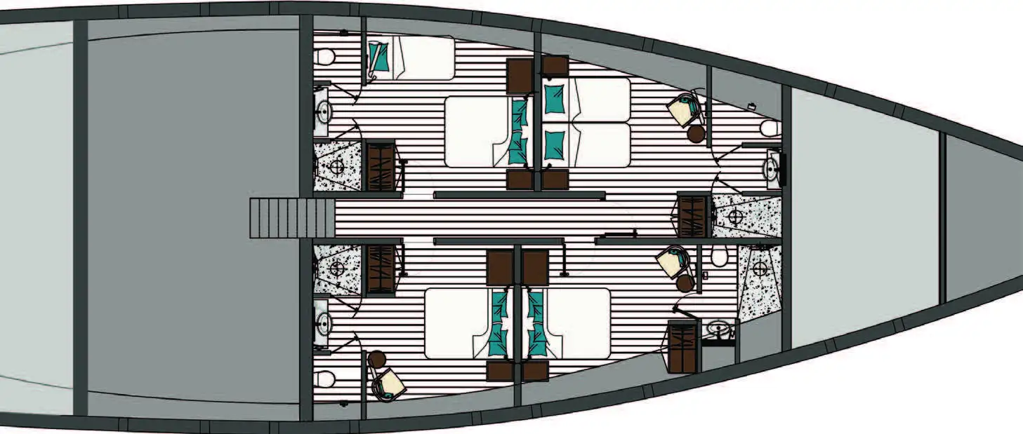 | Types de cabines | 6 (5 × double, 1 × double / twin, 1 × lit supplémentaire) |