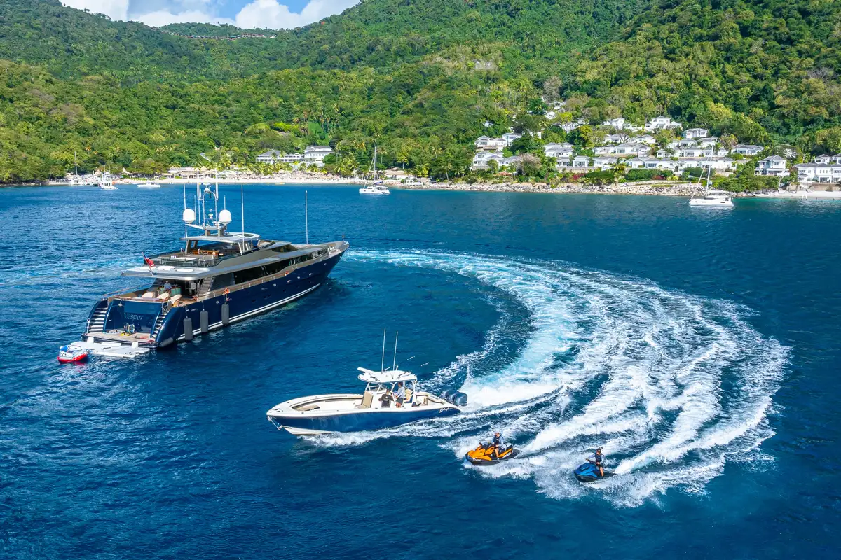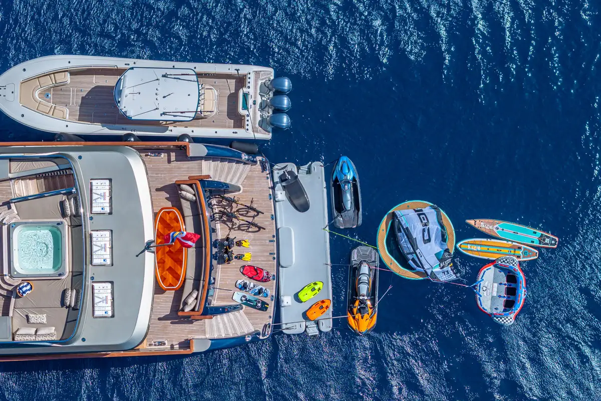 Unleash your spirit of adventure with a thrilling array of water toys. From the 12.5m (41ft) Novamarine BS120 towed tender ready to whisk you away to secluded coves, to the excitement of sport fishing with top-of-the-line equipment, VESPER offers endless opportunities for excitement. Glide across the waves on the eFoil, explore the depths with SeaBobs, cut through the waters on a high-powered jet ski, or enjoy an invigorating on-water workout in the garage.