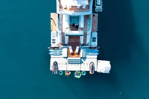 Delivered just last year and now available for charter in pristine condition, VIRTUOSITY is a spectacular 57m quad-deck vessel with some wonderful outside spaces, an entire private owner’s deck and an enormous sea-level beach club with a very extensive, brand new fleet of small craft and tenders, watersports equipment and toys. Stylish, versatile and exceptionally spacious, she’s ideal for any type of yachting holiday in the western Mediterranean or the Caribbean.