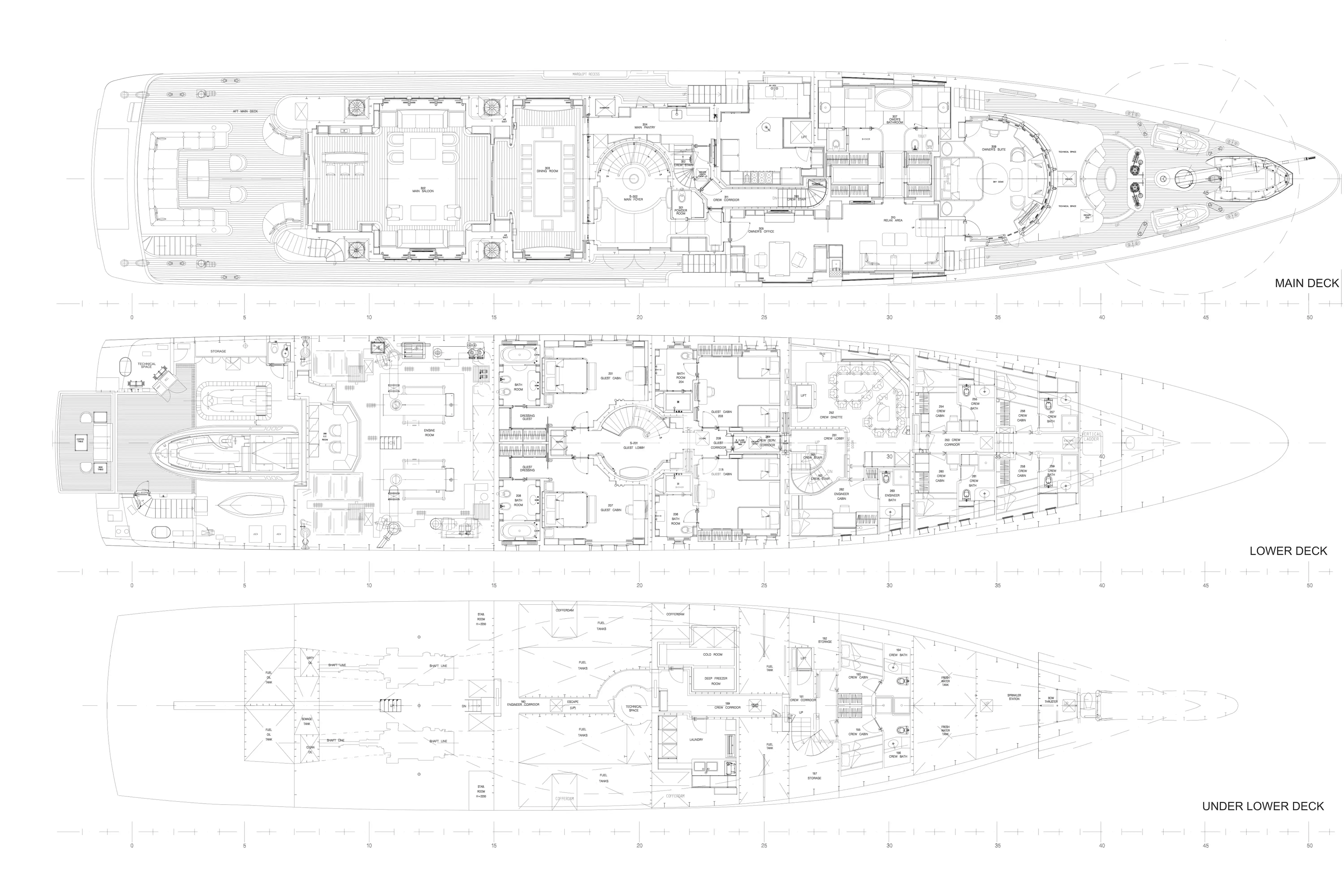 - Full-beam main deck master suite with observation lounge, walk-in wardrobe, and his-and-hers bathrooms