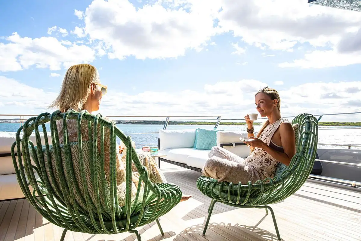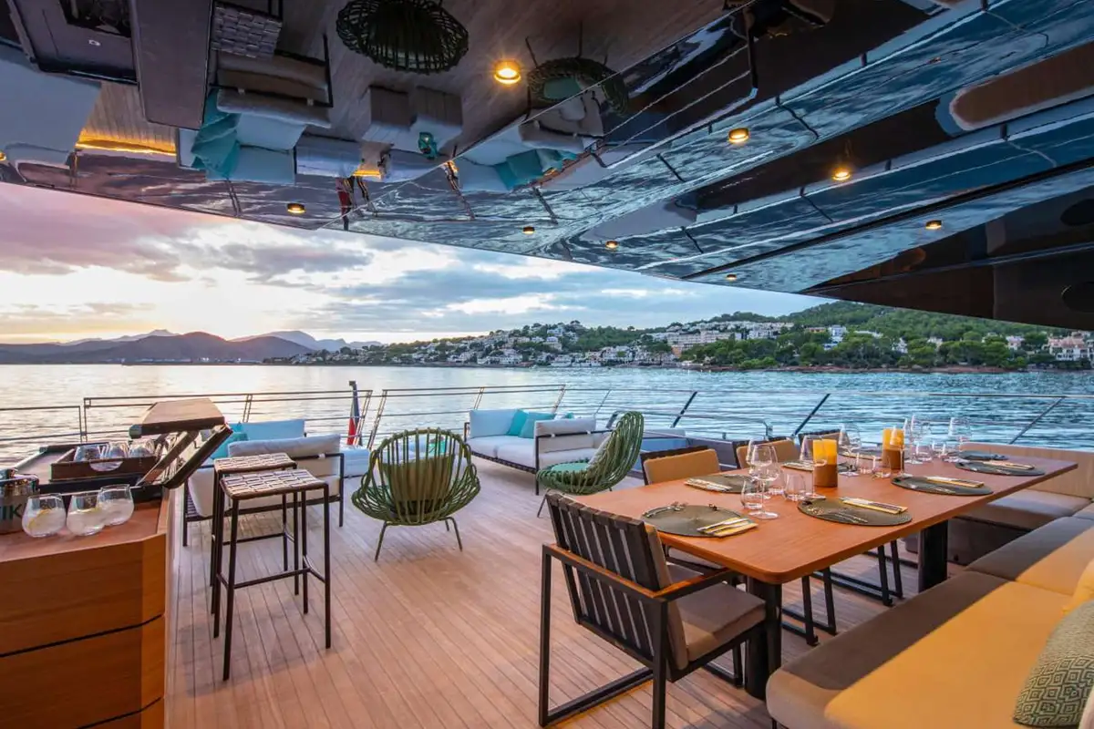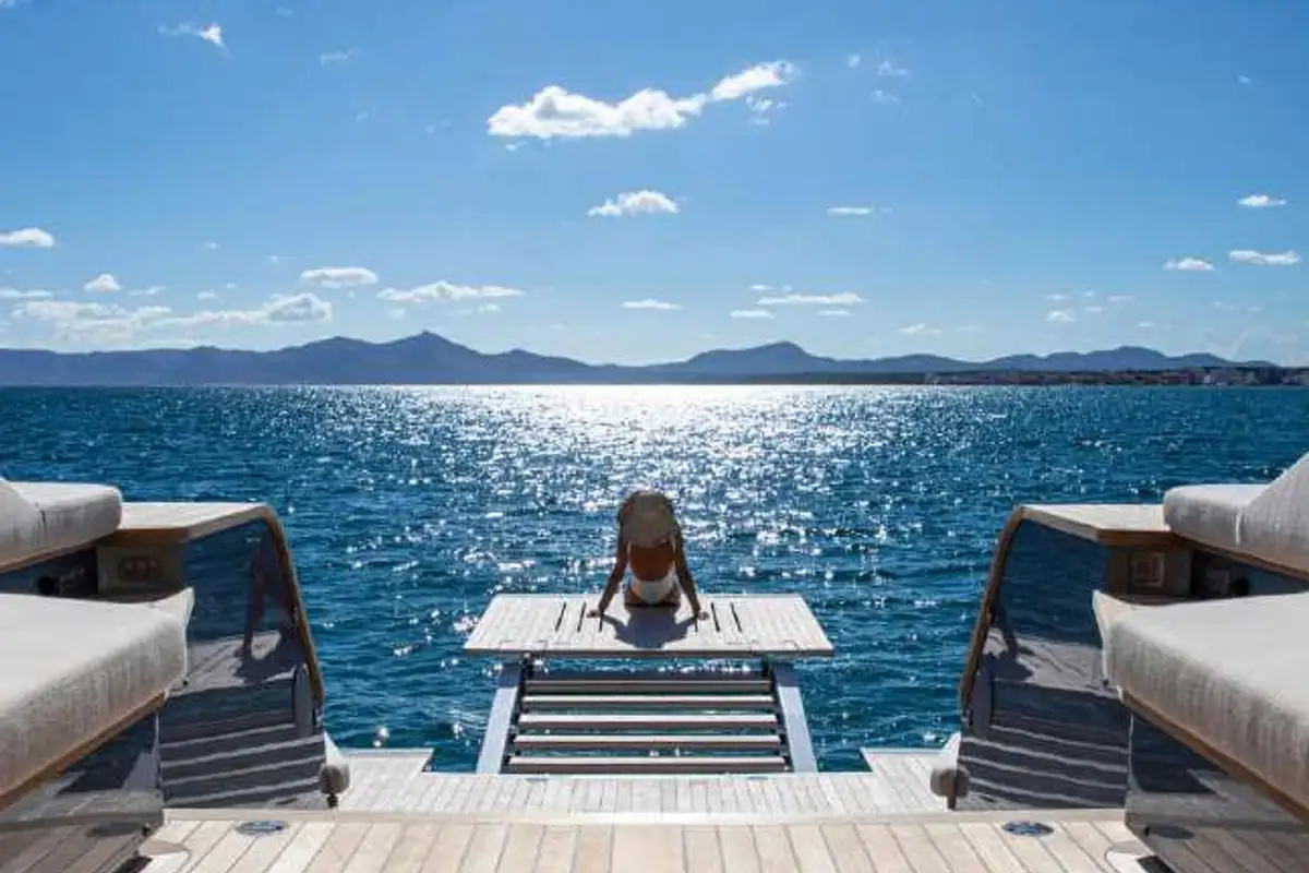 Outside, her design excels at bringing the outdoors in. Soak up the sun on the expansive sun deck, enjoy long lunches at one of several al fresco dining spots, or unwind on the aft terrace – complete with a hydraulic platform that doubles as a beach club and sea-level lounge.