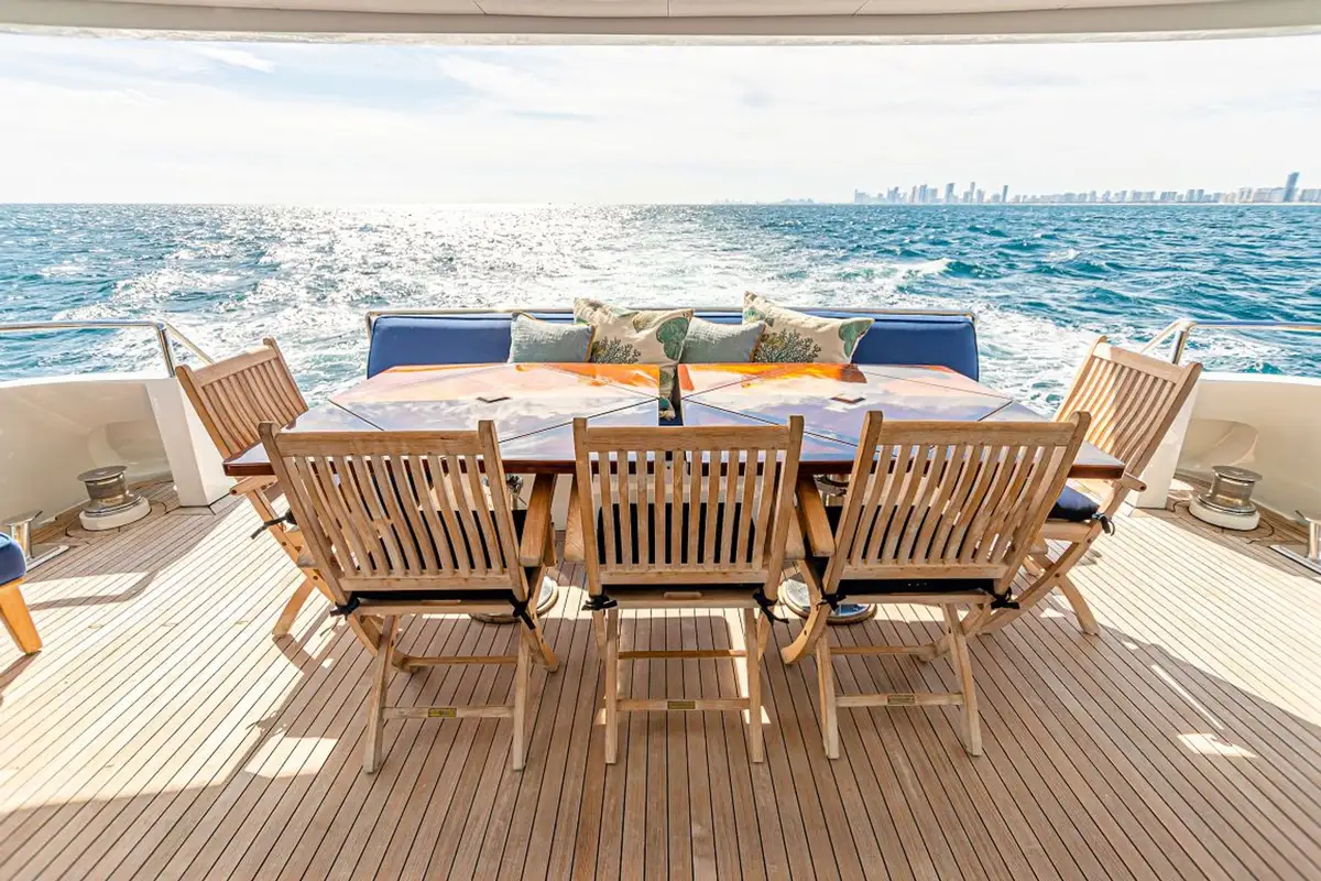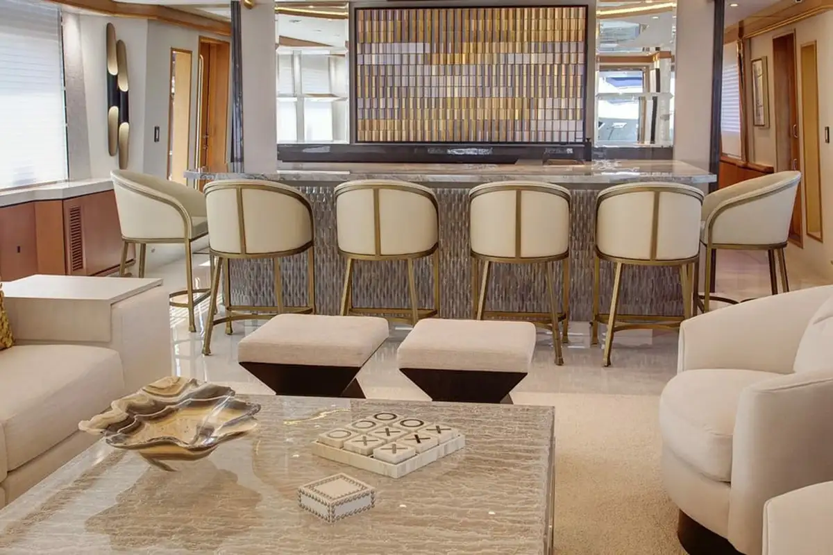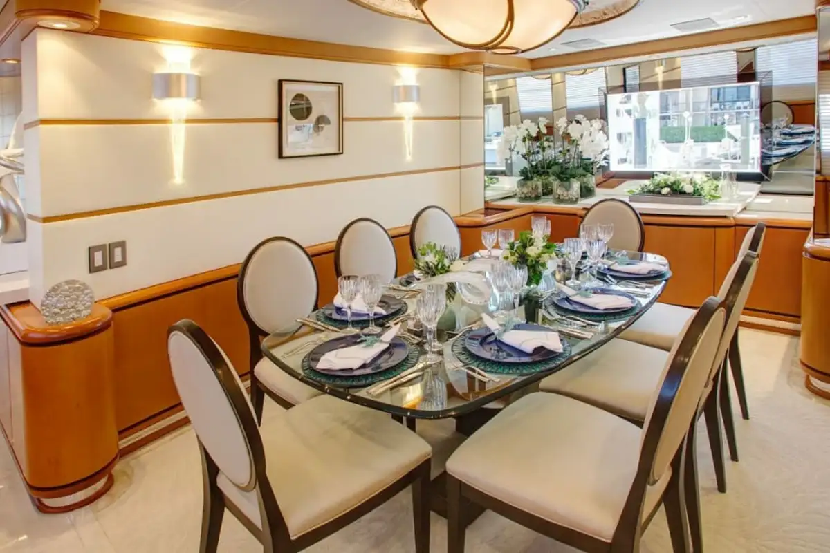 The main deck lounge welcomes you with casual elegance, soft textures, warm tones, and a layout that invites conversation and connection. The formal dining room offers an elevated setting for special occasions or chef driven tasting menus. If you prefer dining under the sky, take your pick between the main aft deck or the sun deck, both designed with al fresco living in mind.