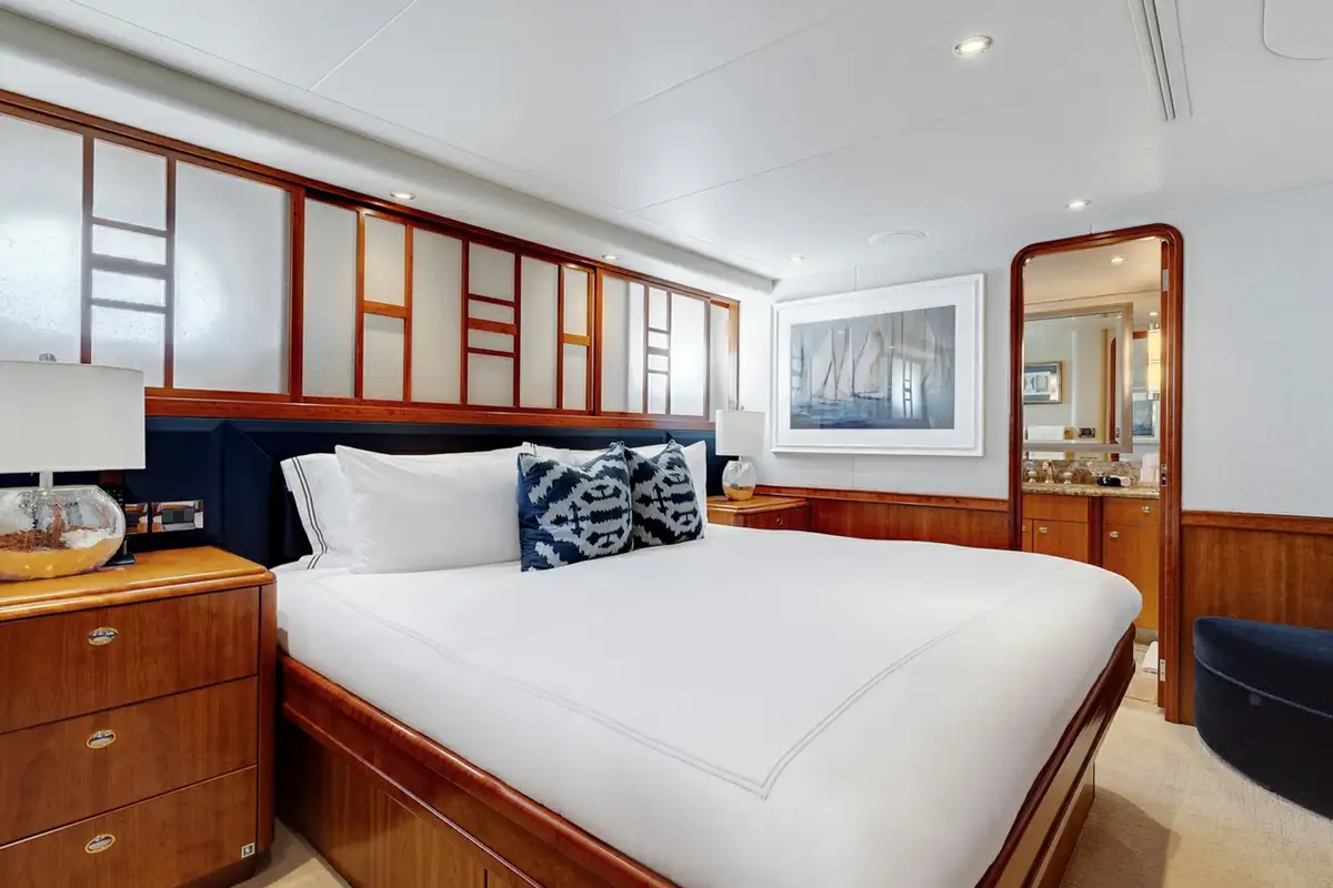 Immensely powerful engines propel her to an exceptional top speed of 26 knots, which will more than double the range and scope of your cruising. State-of-the-art stabilisers smooth her motion at sea and at anchor, ensuring the comfort of all guests on board. And she’s run by seven highly professional crew with the expertise and dedication to deliver attentive service at all times.