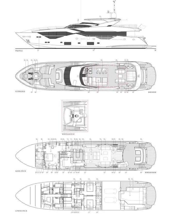 - Zero speed stabilisers to reduce any rolling motion while at anchor