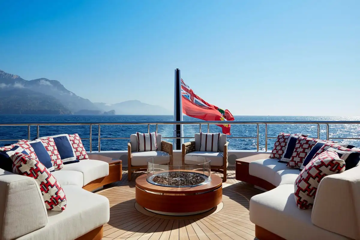 As the day winds down, many guests are drawn to the upper aft deck to gather around the flame table. Conversations flow late into the evening, long after dinner has ended. Alternatively, you may prefer the sophisticated indoor lounge areas, perfect for more intimate moments of relaxation.