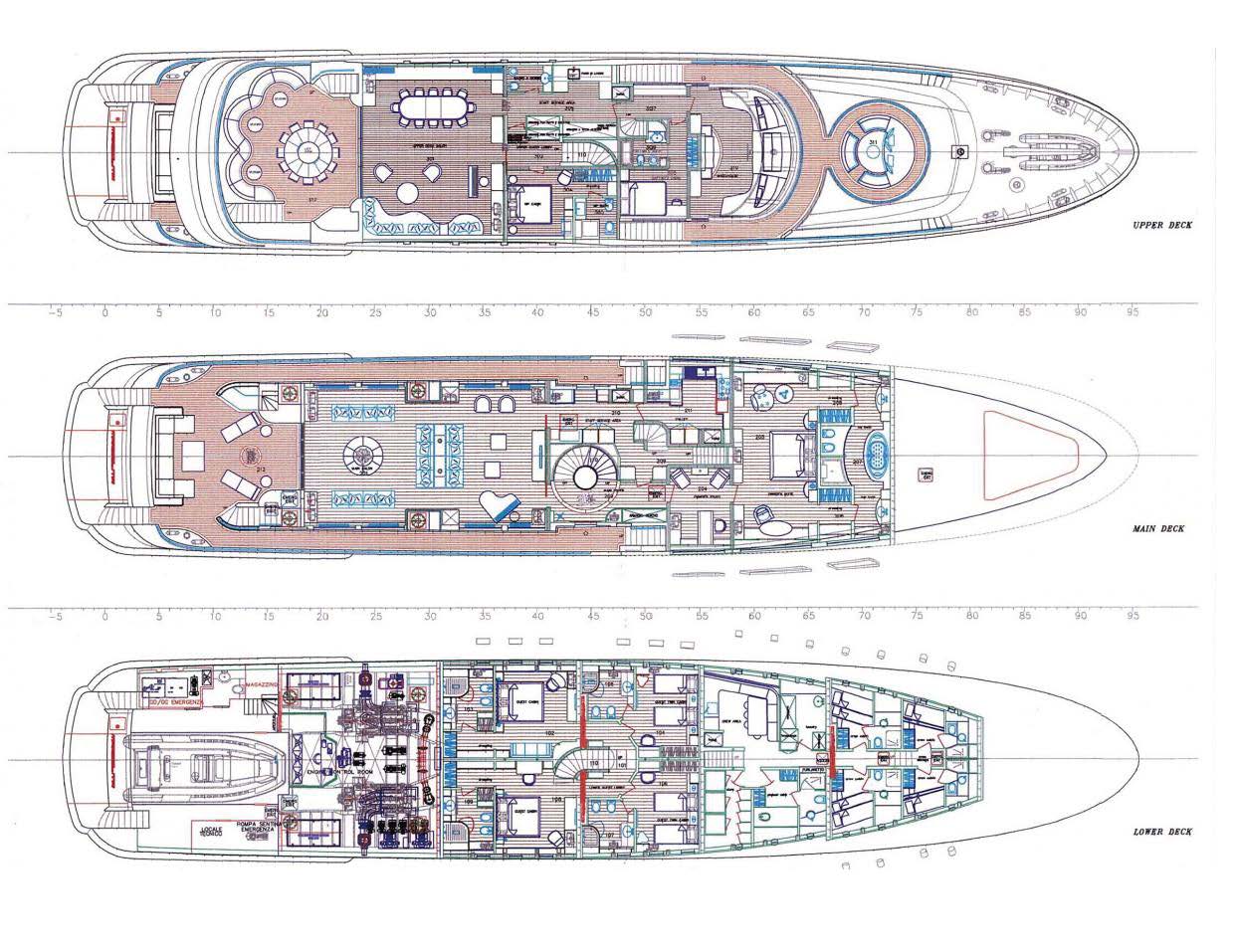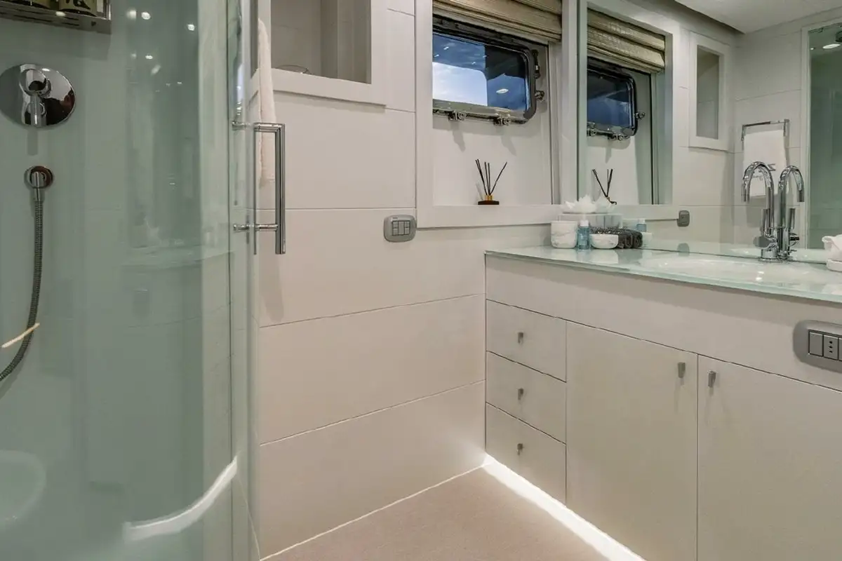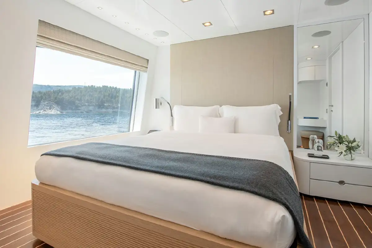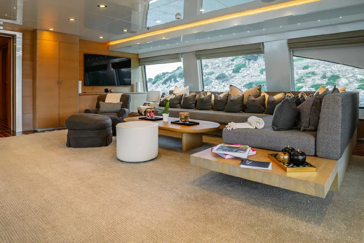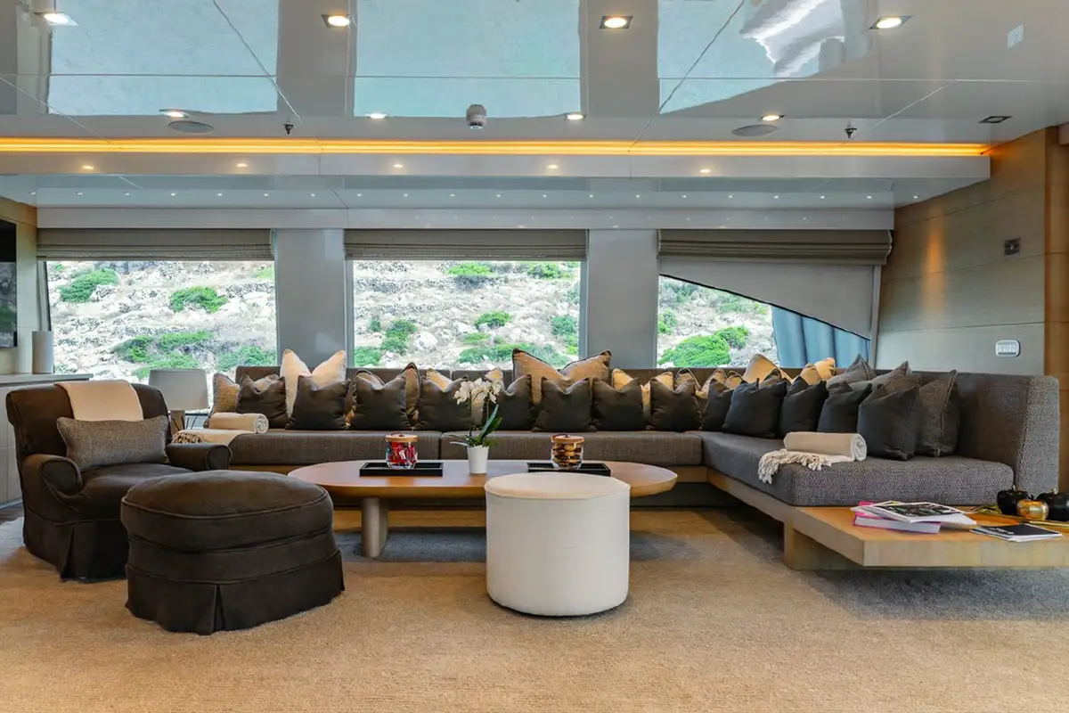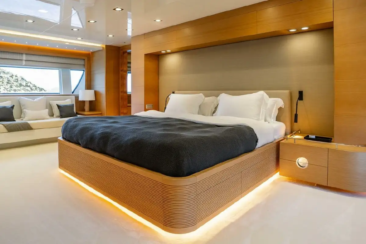 ZIA accommodates up to twelve guests in six beautifully appointed cabins. The full-beam master cabin is located on the main deck and features a private study, his-and-her bathrooms and a spa bath. A VIP cabin is situated on the upper deck, while the lower deck hosts two double cabins and two twin cabins—each convertible to doubles—providing maximum flexibility for family and friends.