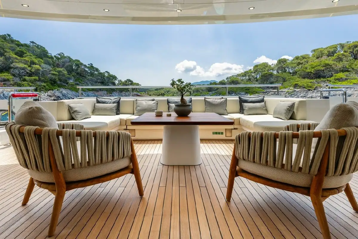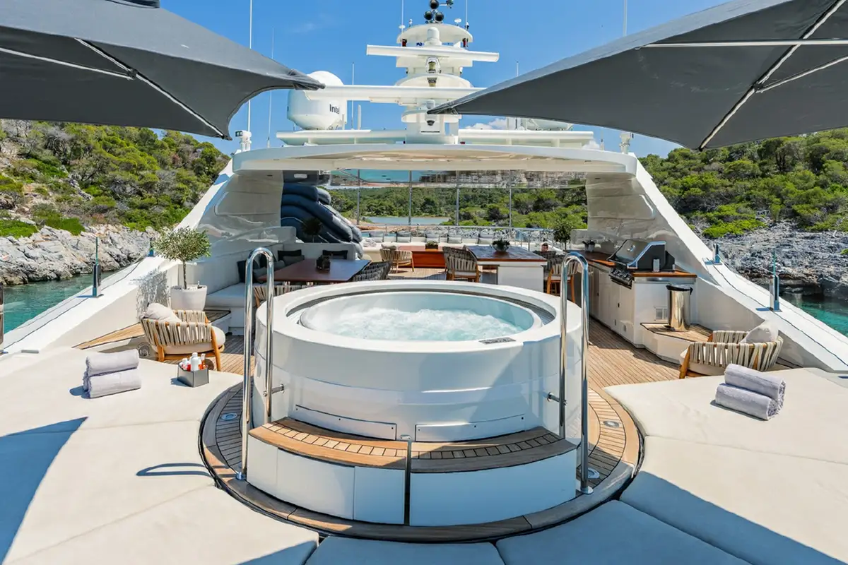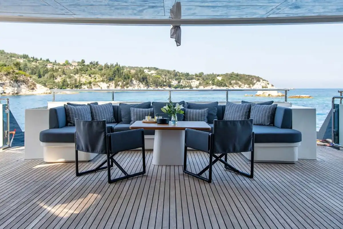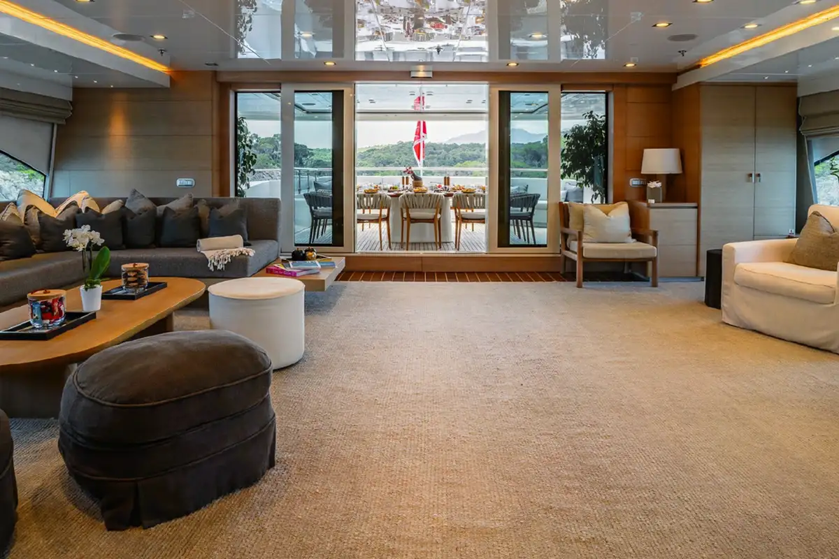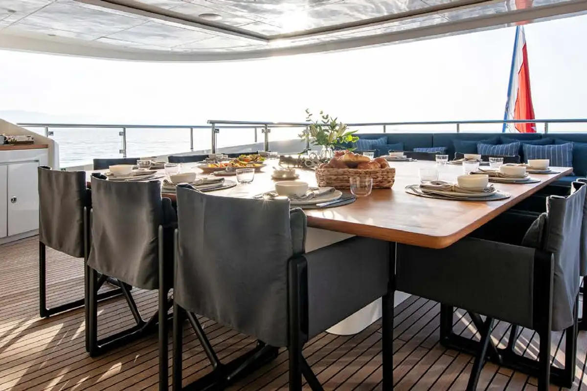 Outdoor living is a defining feature aboard ZIA. The expansive sun deck invites long, lazy afternoons with a Jacuzzi, sun pads, a fully equipped bar and a shaded al fresco dining area, all overlooking endless seascapes. The upper deck aft offers a more private setting for sunset aperitifs or post-dinner conversations, while the beach club provides seamless access to the sea for both relaxation and adventure.