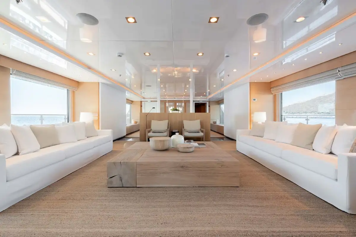 Delivered by Ortona Navi, the 50m motor yacht ZIA offers timeless Italian craftsmanship, cutting-edge engineering and a whisper of understated elegance. Designed for effortless cruising and indulgent comfort, her serene interior by Alberto Pinto draws on natural woods and calming neutral tones, creating an atmosphere of refined minimalism across all guest areas. The main deck lounge is flooded with light through expansive windows, while the sky lounge provides a more intimate space with panoramic views and a relaxed ambiance.