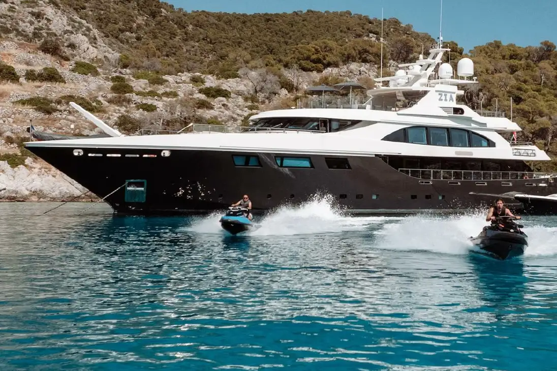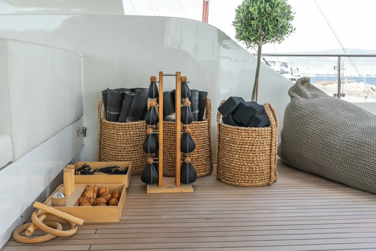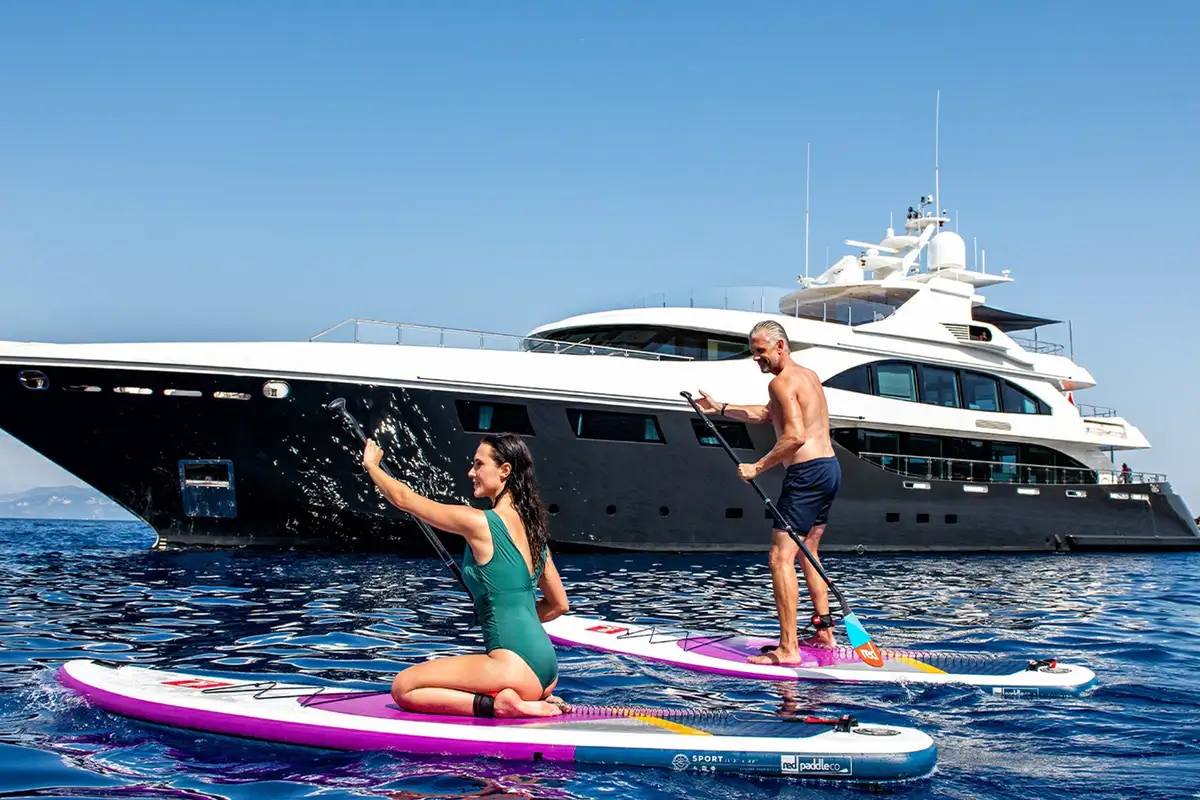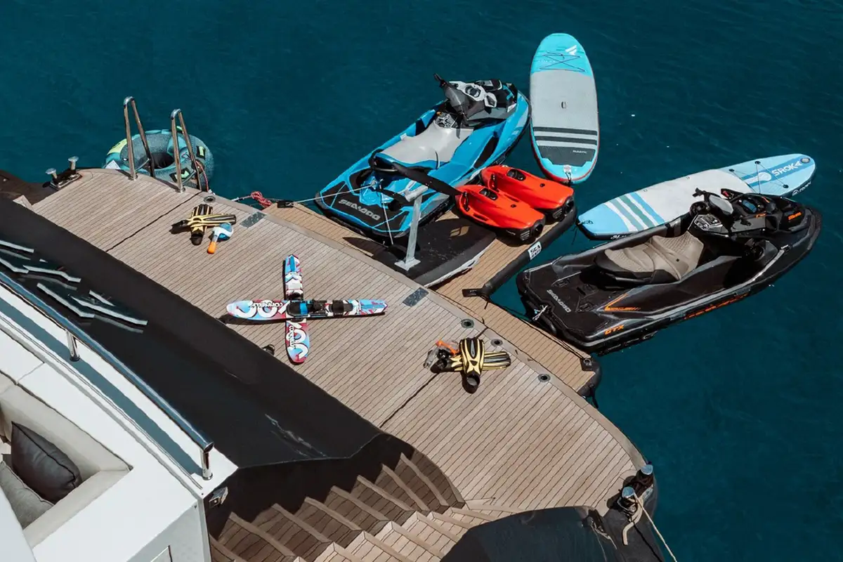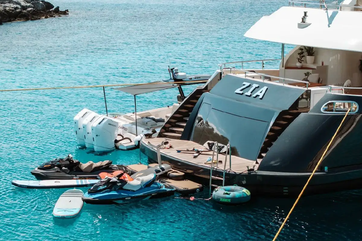 For those drawn to the water, ZIA’s selection of water toys ensures adventure is never far away. Guests can enjoy two jetskis, two eFoils, paddleboards, waverunners, wakeboards, water skis, snorkelling gear and a 5.75-metre tender for excursions. A compact gym on board allows for fitness at sea with views that inspire.