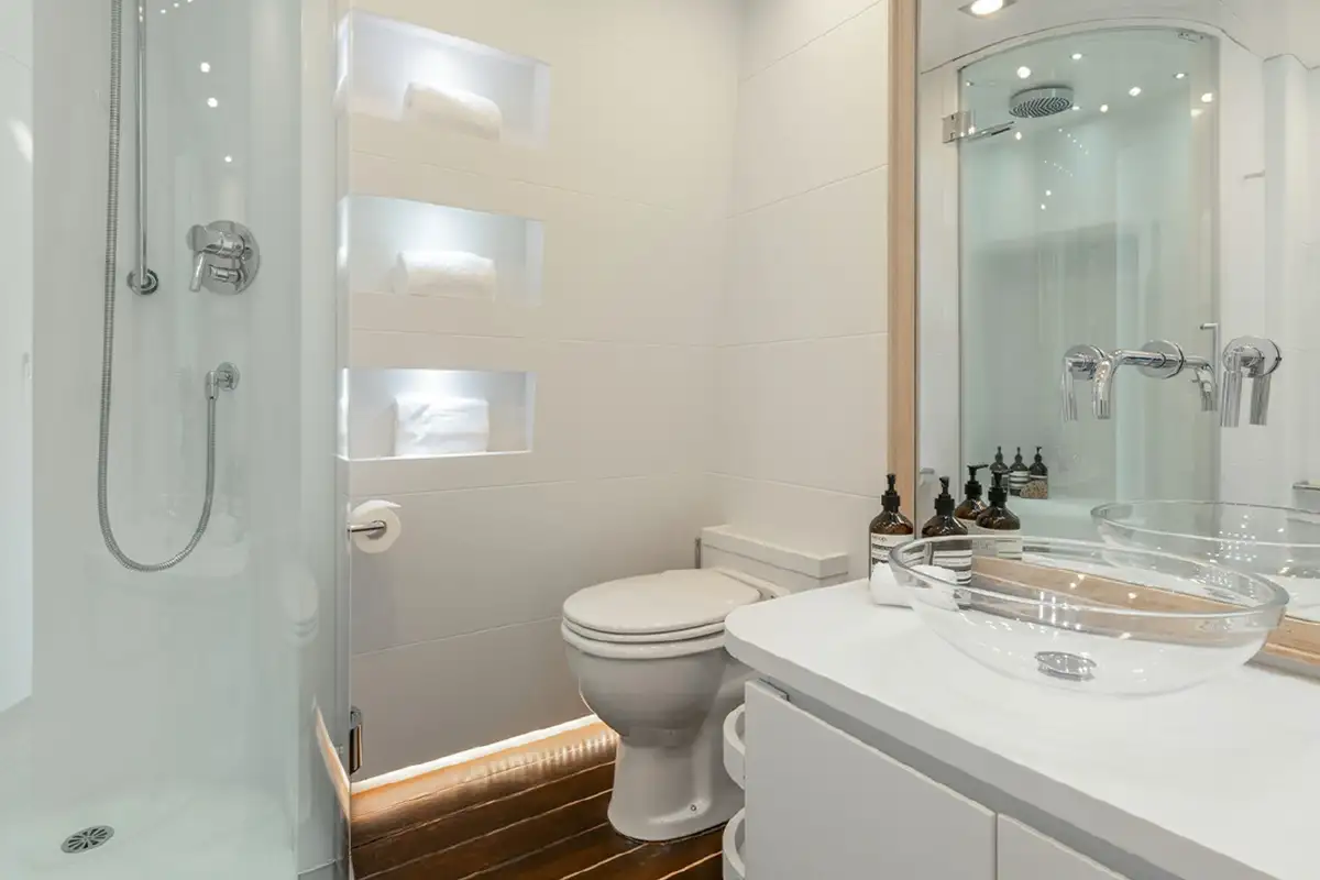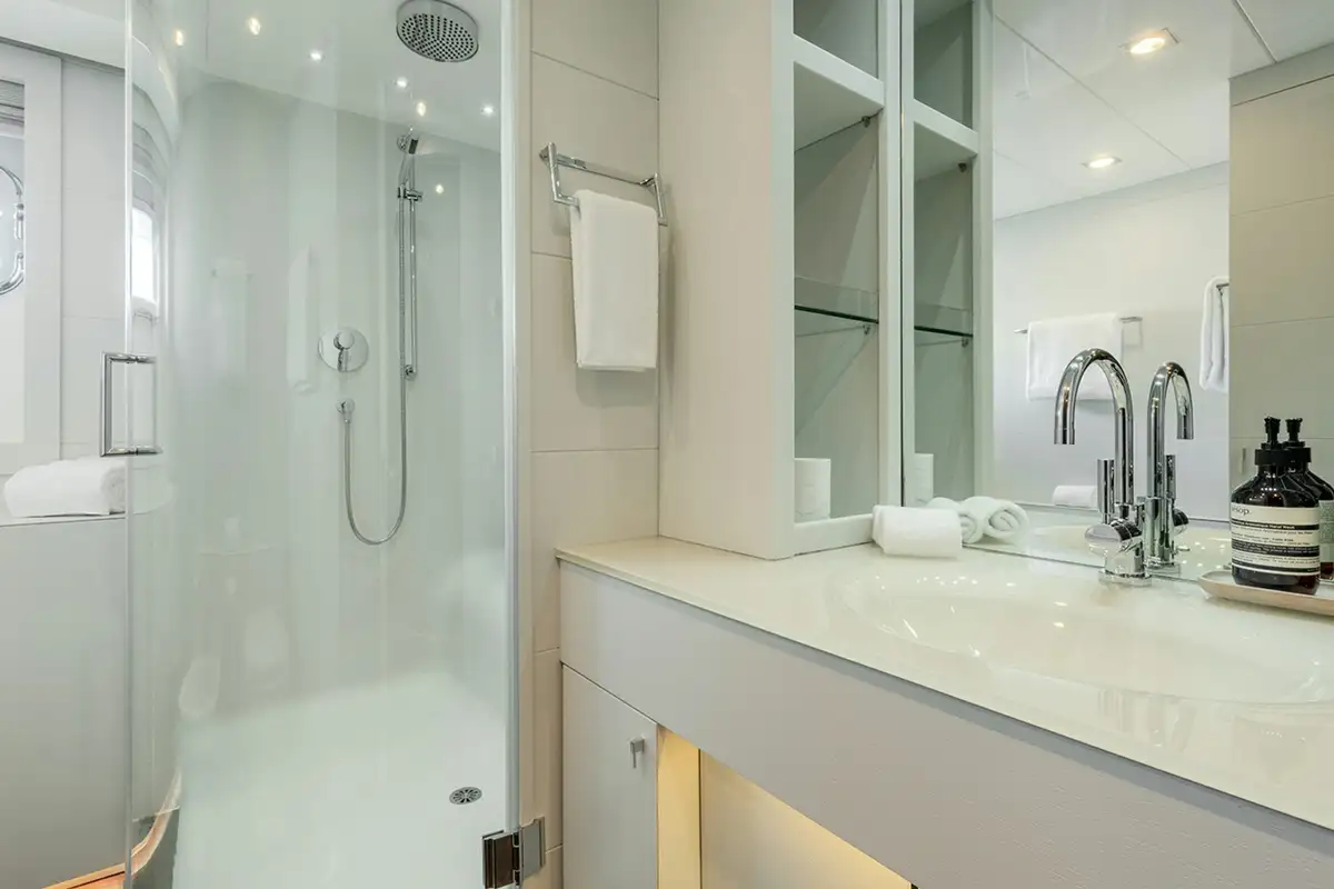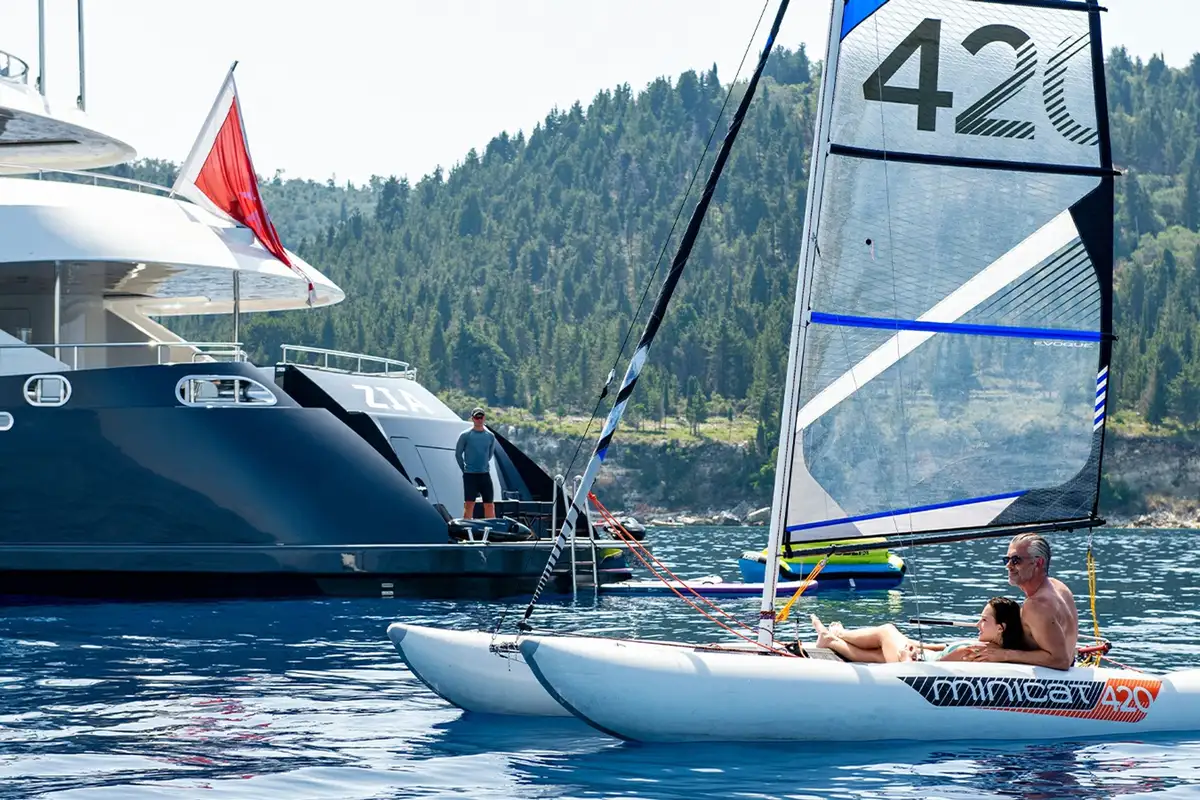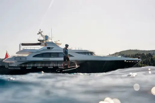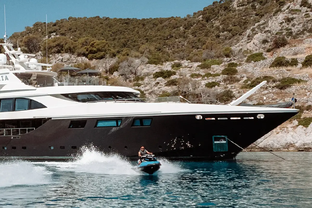 For those drawn to the water, ZIA’s selection of water toys ensures adventure is never far away. Guests can enjoy two jetskis, two eFoils, paddleboards, waverunners, wakeboards, water skis, snorkelling gear and a 5.75-metre tender for excursions. A compact gym on board allows for fitness at sea with views that inspire.