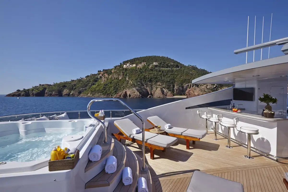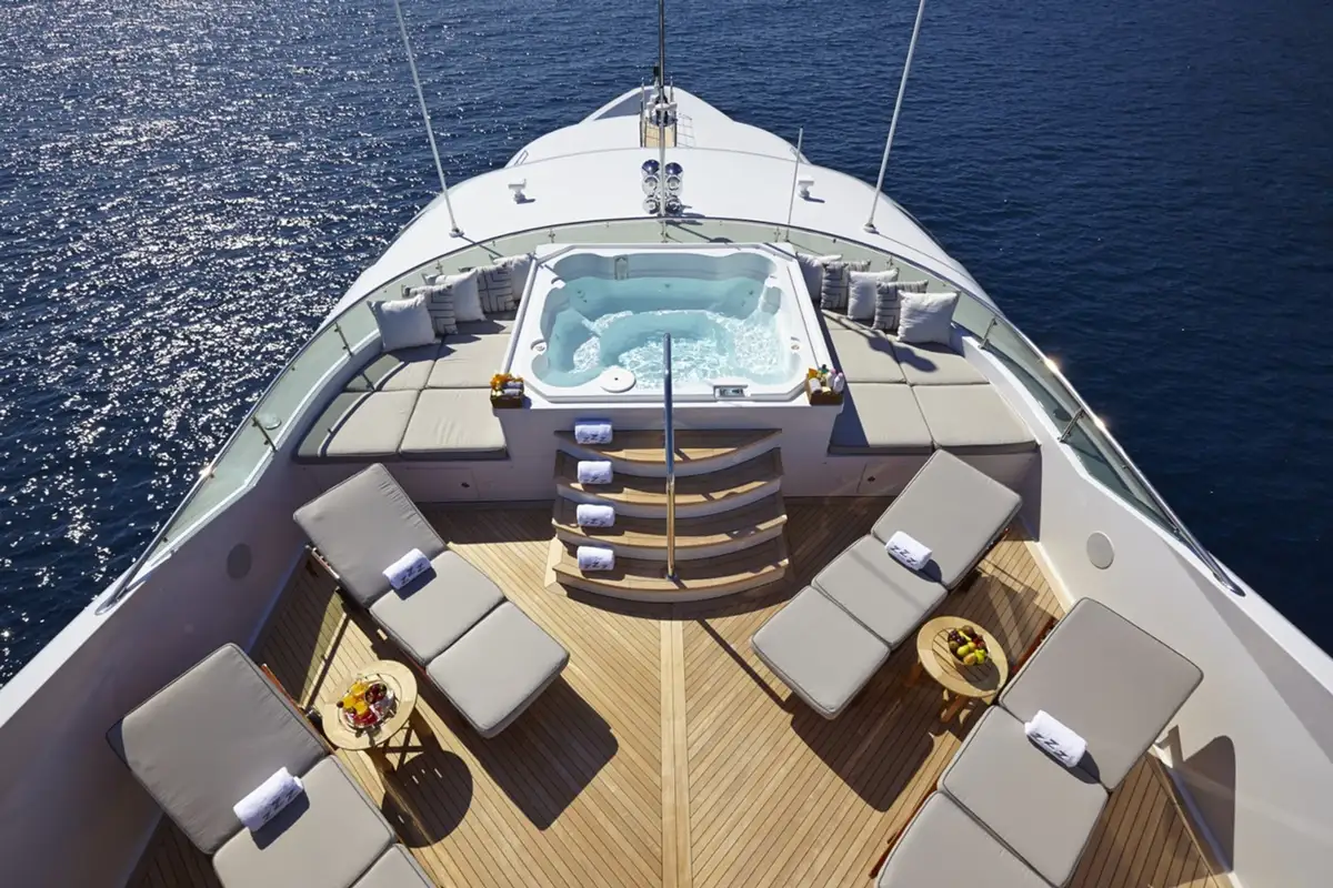The day has so much in store... Do you fancy a fishing trip? The yacht’s 12m (40ft) Seahunter tender is fitted out for you to bring home your catch. Meanwhile sun lovers can head to the sun deck to find loungers around the jacuzzi – and an inflatable waterslide from the top deck to the sea when you need to cool off!