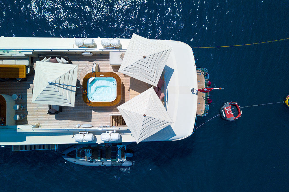 Families love this yacht. There is a place and activity for every generation, from old to young. Everyone finds their favourite spot - parents like to relax on the sun deck with a good book, or in the shade of the bar drinking the smoothie of the day. Children play with the toys for hours! And at the end of the day, everyone is relaxing in the jacuzzi with a glass in hand.
