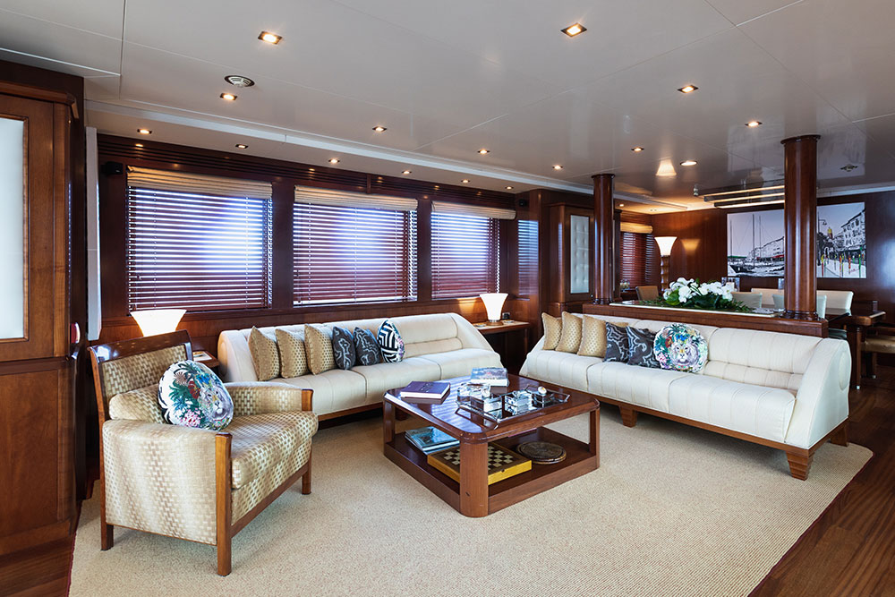 This yacht is set up for fun! The huge sun deck with bar, BBQ, jacuzzi and steam room; all-weather open air dining on the main deck aft, with a bar just inside for entertaining; high-tech TV and sound system for movie nights. We can organise a party in no time, themed evenings for special events, birthdays, and even weddings.